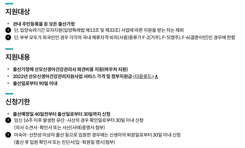 - 신청 시점: 출산 예정일 40일 전부터 출산일로부터 30일 이내