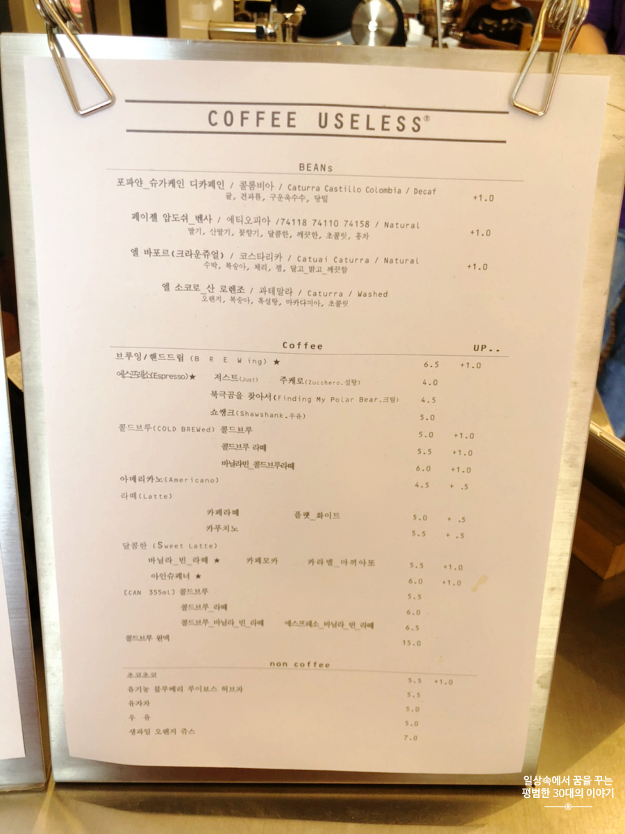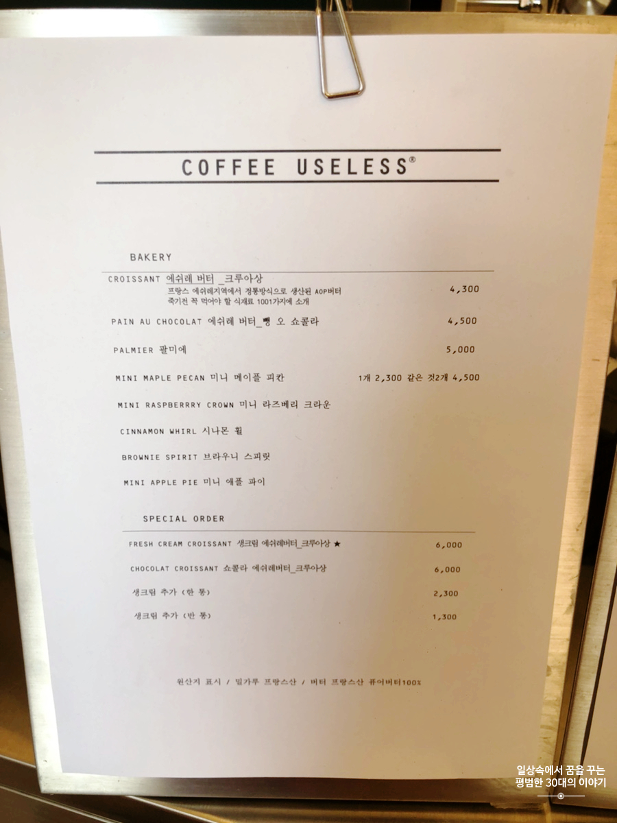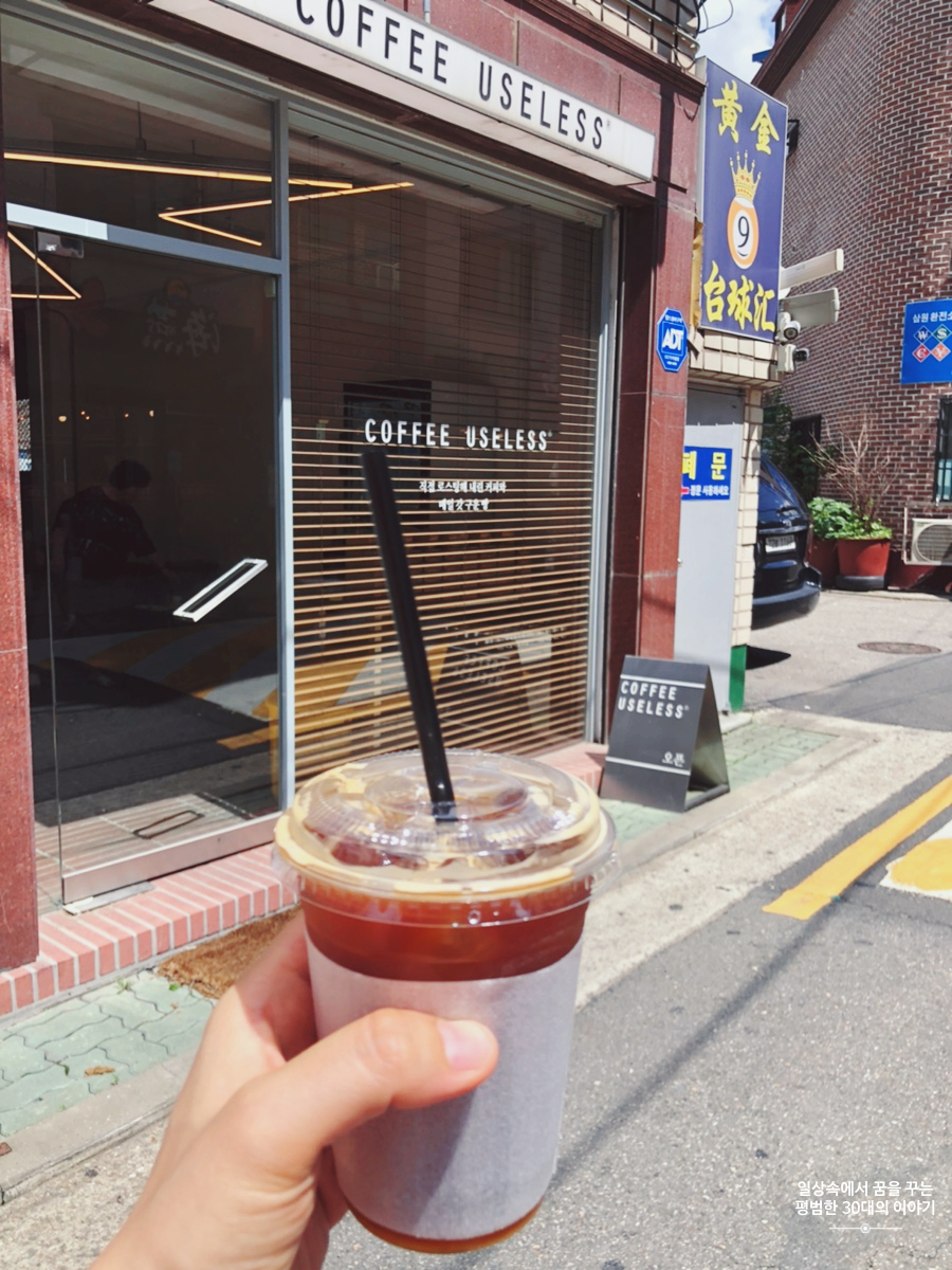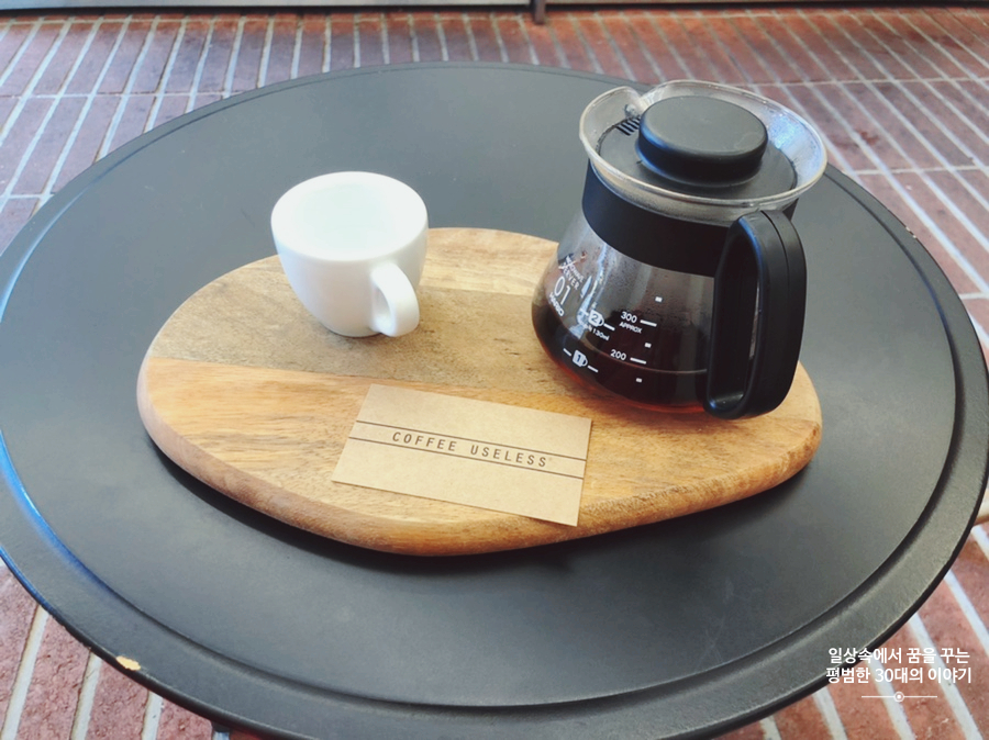 출산을 앞두고 여전히 나의 최애 시간은 카페 탐방! 항상 의문이 왜 우리 동네에는 맛있는 커피를 제공하는 개인 카페를 단 하나도 찾을 수 없는 것인가였다. 그러다가 우연치 않게 발견한 COFFEE USELESS! 이런 곳에 이런 카페가 있다고? 정말 사막에서 오아시스를 만난 것 마냥 반가웠다. 사장님이 로스팅도 직접 하시고 빵도 직접 구우시는 것 같더라. 이런 곳을 왜 이제서야 발견했을까? 물론 이사 온 지 얼마 안 된 탓도 있지만 우리 동네에서 이런 카페를 발견할 것이라는 기대 심리가 단 일도 없었기 때문이 아닐까 싶다.