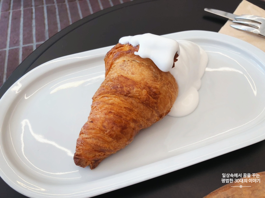 다행히 임산부인 내가 마실 수 있는 디카페인 원두를 취급하고 계셔서 포파얀 슈가케인 디카페인 원두를 따뜻하게 핸드드립으로 한 잔, 차갑게 기계로 한 잔 주문하고 뭔가 아쉬워서 생크림 에쉬레버터 크루아상(6000원)을 주문했다. 오랜만에 제대로 된 원두를 핸드드립으로 내려 마시니 속이 확 풀리는 기분이다. 기계로 내린 커피는 아이스라 그런지 아무래도 핸드드립보다는 원두의 특성을 제대로 느끼기 어려웠다. 다음에는 기계로 내린 따뜻한 커피를 마셔봐야겠다. 생크림 에쉬레버터 크루아상은 가격 대비 조금 아쉬운 맛이었지만 식감 자체는 쫄깃하면서 바삭한게 먹을만 했다. 다음에는 다른 디저트를 주문해 봐야겠다.
