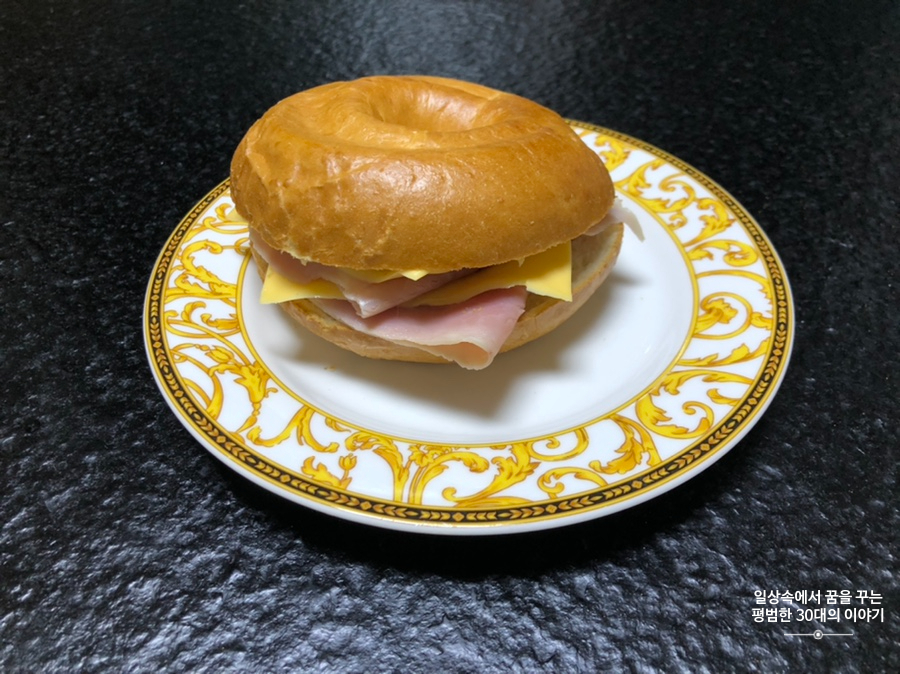 베이글 샌드위치 - 베이글, 잠봉, 체다치즈, 버터