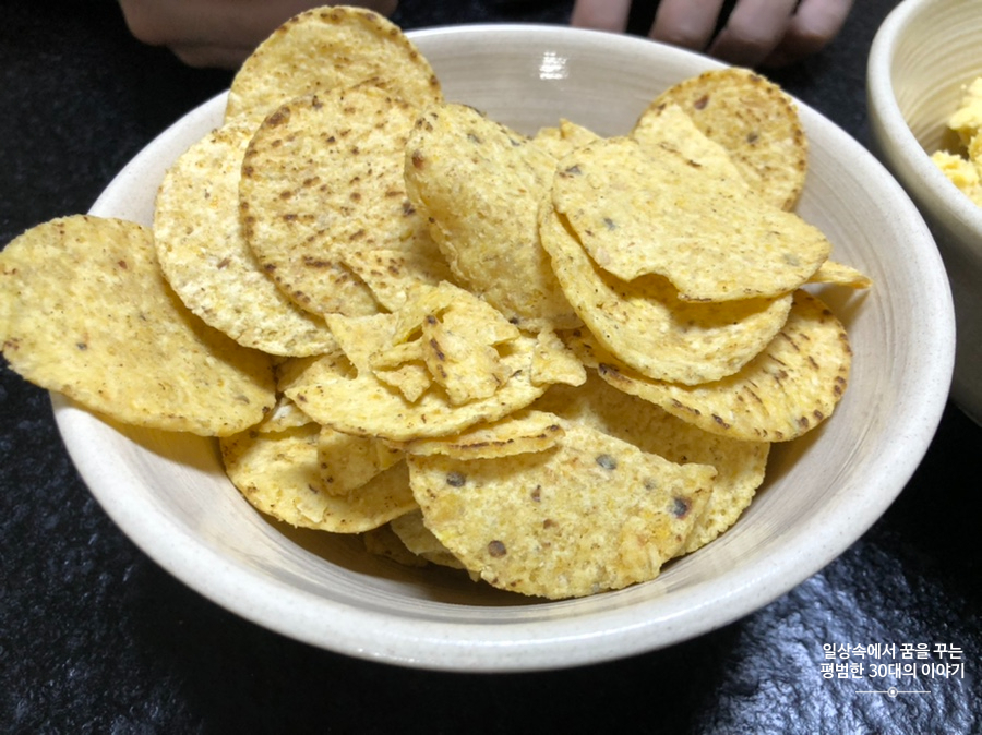 저녁: 금요일에 먹고 남은 후무스, 나초 |