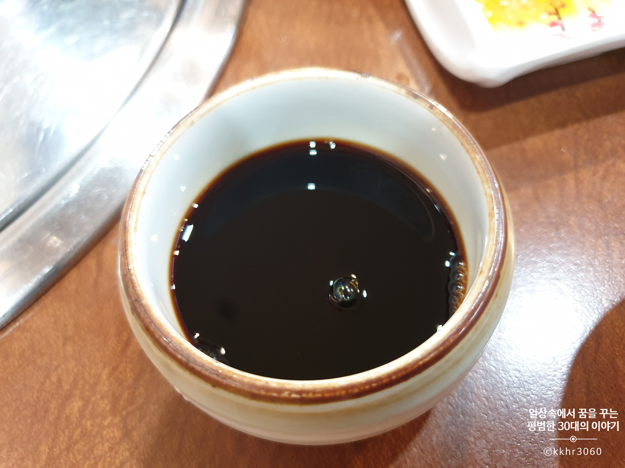 가장 처음에 나온 말엑기스, 사진에서 보면 알 수 있듯 한약 맛이 난다. 원래부터 한약도 잘 못 먹는 나와 한약이 뭔지도 모르는 짝꿍은 한 입 먹자마자 도저히 못 먹겠다며 한 쪽 구석으로 치워놨다. 서빙해주시던 이모님이 이거 건강에 좋은 거라며 다 먹으라고 하셨는데 도저히 못 먹겠더라. 어르신들은 건강에 좋다고 하니 입에 써도 맛있다며 다 드실듯한 맛이다.