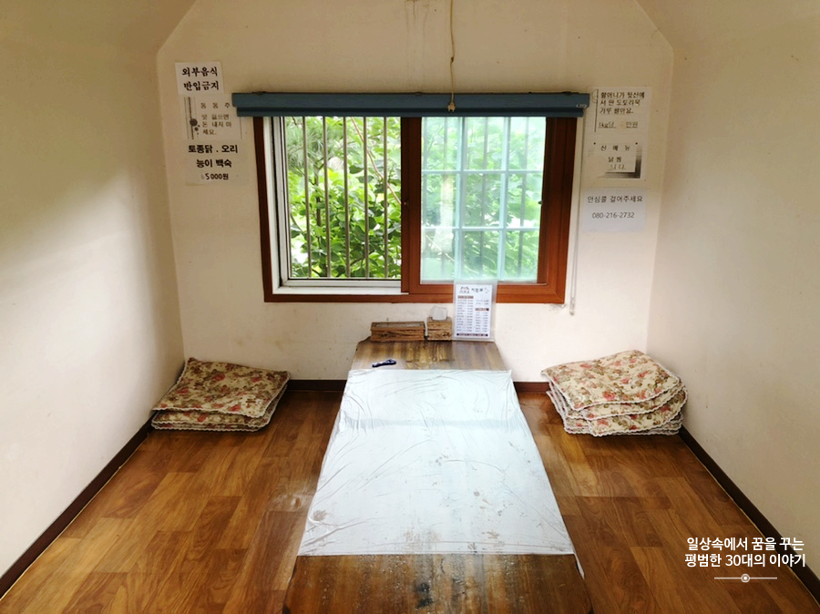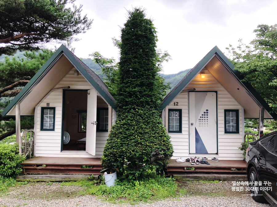 하루 전날, 비가 시원하게 내렸던지라 여름임에도 불구하고 날씨가 선선해서 방갈로 양쪽에 있는 창문과 문을 열어놓고 식사를 하니 더욱 분위기가 좋았다. 날이 더운 날이라 해도 방갈로 내부에 에어컨이 설치되어 있어 걱정할 필요는 없을 것 같다. 나중에 다래골에 대한 후기를 찾아보니 겨울에는 방갈로 내부 바닥이 따뜻해서 잠이 솔솔 온다고 한다. 눈 오는 겨울날, 방문해도 참 분위기 좋을 것 같다. 단점이라면 아무래도 주변에 나무도 많고 하다 보니 벌레가 많고 방갈로 내부가 깨끗하게 관리되고 있지는 않더라.
