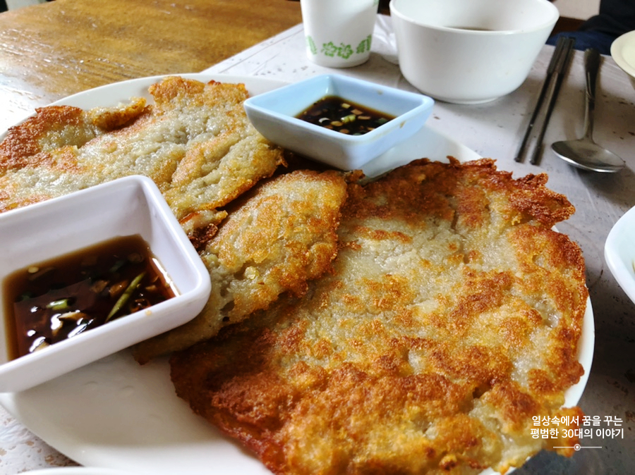오리진흙구이는 예상보다 더 맛있었는데 우선 오리고기 자체가 무척 부드럽고 안에 들어있는 찹쌀도 쫄깃쫄깃하니 고소해서 순식간에 다 먹어치웠다. 크기도 무척 커서 네 명이서 먹기에 딱 좋았다. 물론 네 명이서 오리진흙구이만 주문하면 양이 부족할 듯싶다. 감자 전은 남편의 최애이기 때문에 주문했는데 큼지막한 감자 전이 세 조각이나 나왔다. 겉은 무척 바삭하고 속은 촉촉하며 쫄깃한 게 식감이 참 좋았는데 사실 감자 전은 어딜 가나 맛없기가 어려운 듯! 도토리묵은 배가 무척 부른 상태임에도 불구하고 궁금해서 주문했는데 벽면에 직접 채취한 도토리로 만든 도토리가루를 판다는 걸 보니 여기서 파는 도토리묵도 직접 채취한 도토리로 만든 게 아닐까 싶다. 도토리묵을 좋아하는 사람으로서 내 입맛에는 합격! 어쨌든 전반적으로 무척 만족스러웠던 다래골~ 동생 고마워 : )