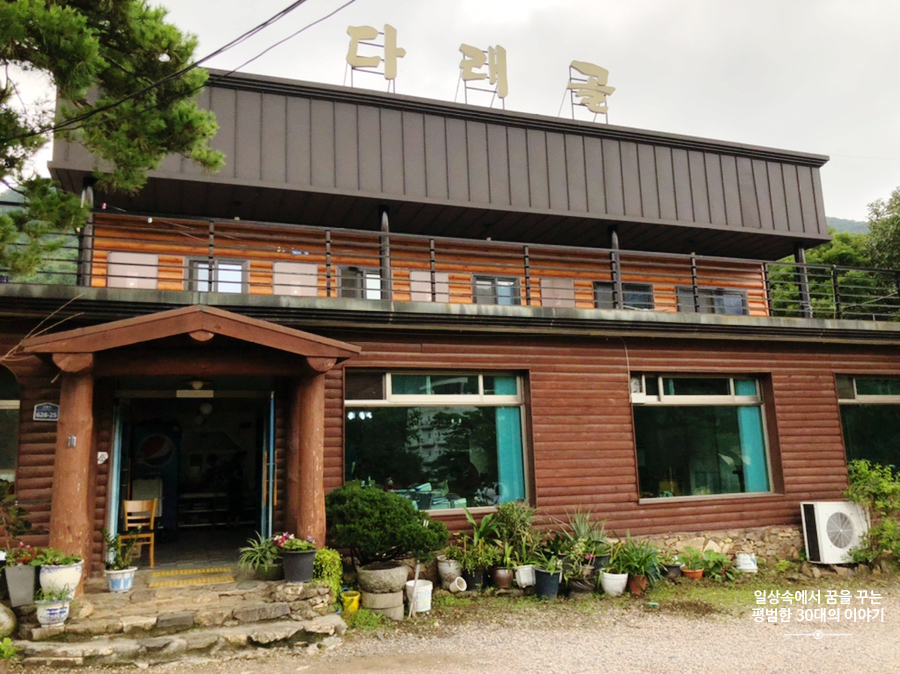 언제 출산을 하게 될지 모르는 요즘, 남동생이 마지막 만찬이라며 데려간 경기도 양주에 위치한 다래골. 남동생이 여자친구랑 갔다가 맛있어서 가족하고도 가보고 싶었다고 한다. 우리는 방문하기 3일 전에 예약을 하고 갔다. 일요일 이른 오전 시간이라 손님이 별로 없을 줄 알았는데 이미 방마다 손님으로 가득하다. 여기는 특이하게 본관 이외에 야외에 방갈로가 12개 정도 있어 가족끼리만 오붓하게 식사하고 싶을 때 이용하면 좋을 것 같다. 미리 예약을 하고 방문한다고 해도 방갈로 이용은 선착순이기 때문에 상황에 따라 이용을 하지 못할 수도 있다. 우리는 일요일 이른 오전인 11시 20분쯤 음식점에 도착해서 그런지 다행히 방갈로를 이용할 수 있었다. 우리 뒤에 온 손님은 본관으로 안내받는 거 보니 아마 우리가 마지막으로 방갈로를 이용할 수 있었던 손님인 것 같다.