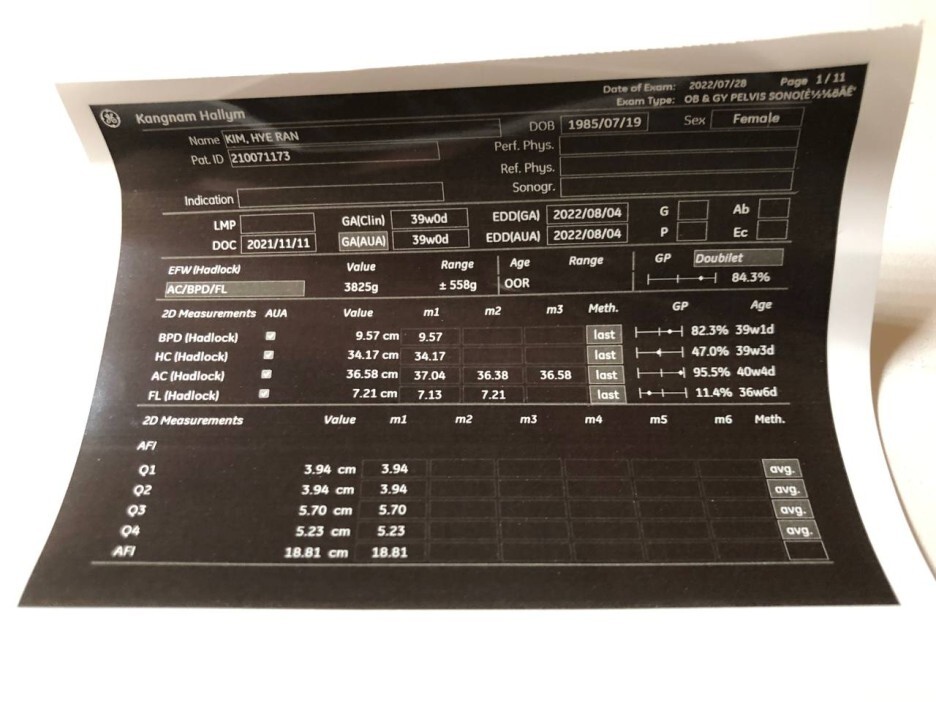 GA(Gestational Age, 임신 주차): 39주 차 0일