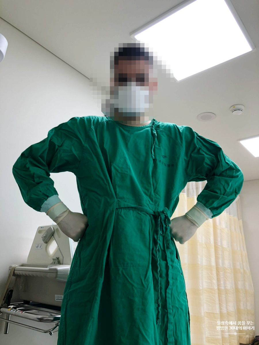 4:55 관장약 항문에 삽입(10분을 참으라는데 미리 화장실 안에서 대기하고 있다가 2분도 못 참고 볼 일 봄; 화장실에서 대기 안 하고 있었으면 침대에 지렸을 뻔;)
