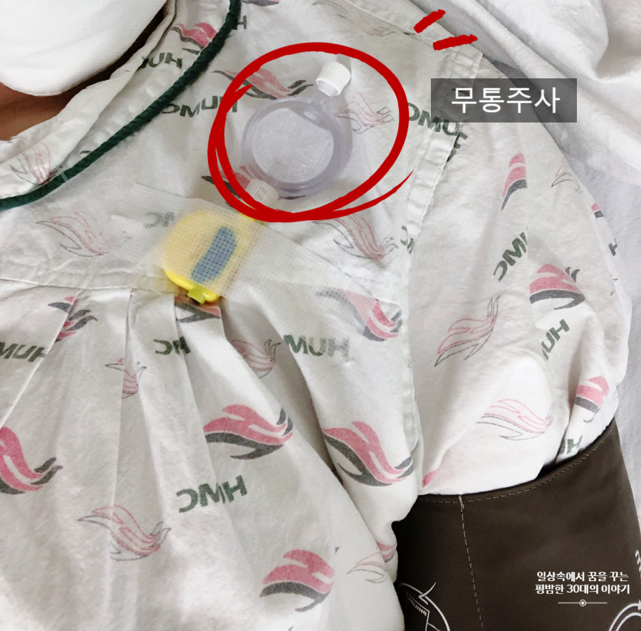 11:30 무통주사 시작! 이미 진행이 많이 된 상태라 무통주사 효과가 크지는 않았음, 아랫배와 항문 쪽으로 고통이 점점 심해짐