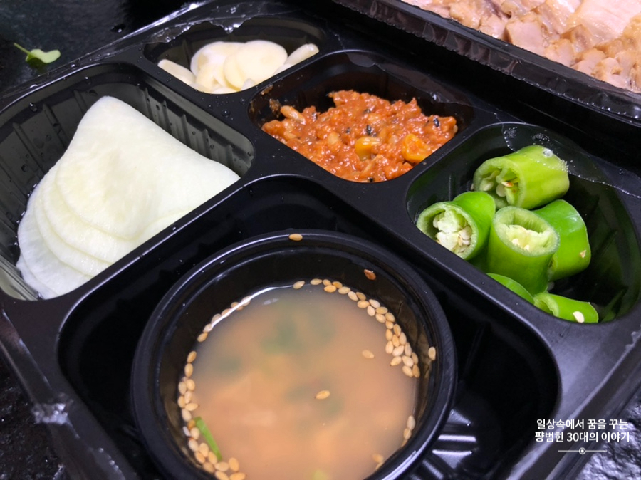 저녁: 배달(정담은 보쌈에서 보쌈) |