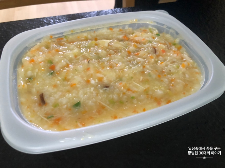 저녁: 나(콩나물 나물, 취나물, 무나물, 장조림, 조미김, 미역국), 남편(삼계죽) |