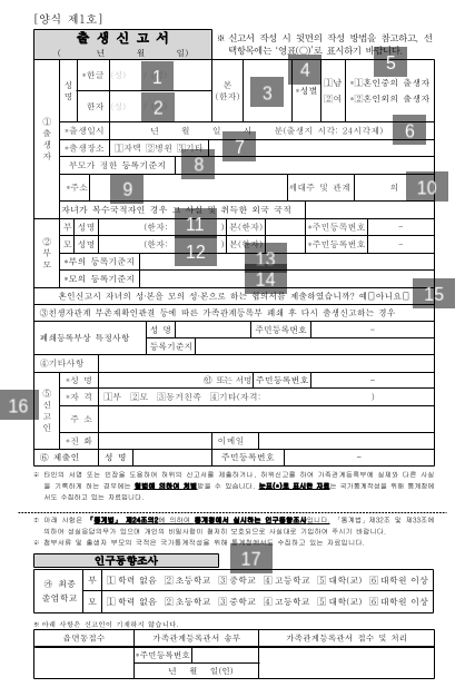 - 병원에서 출생한 경우 출생증명서 기준으로 작성