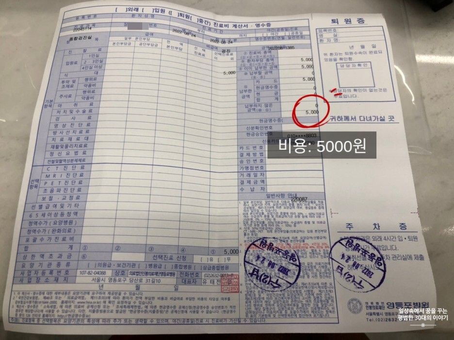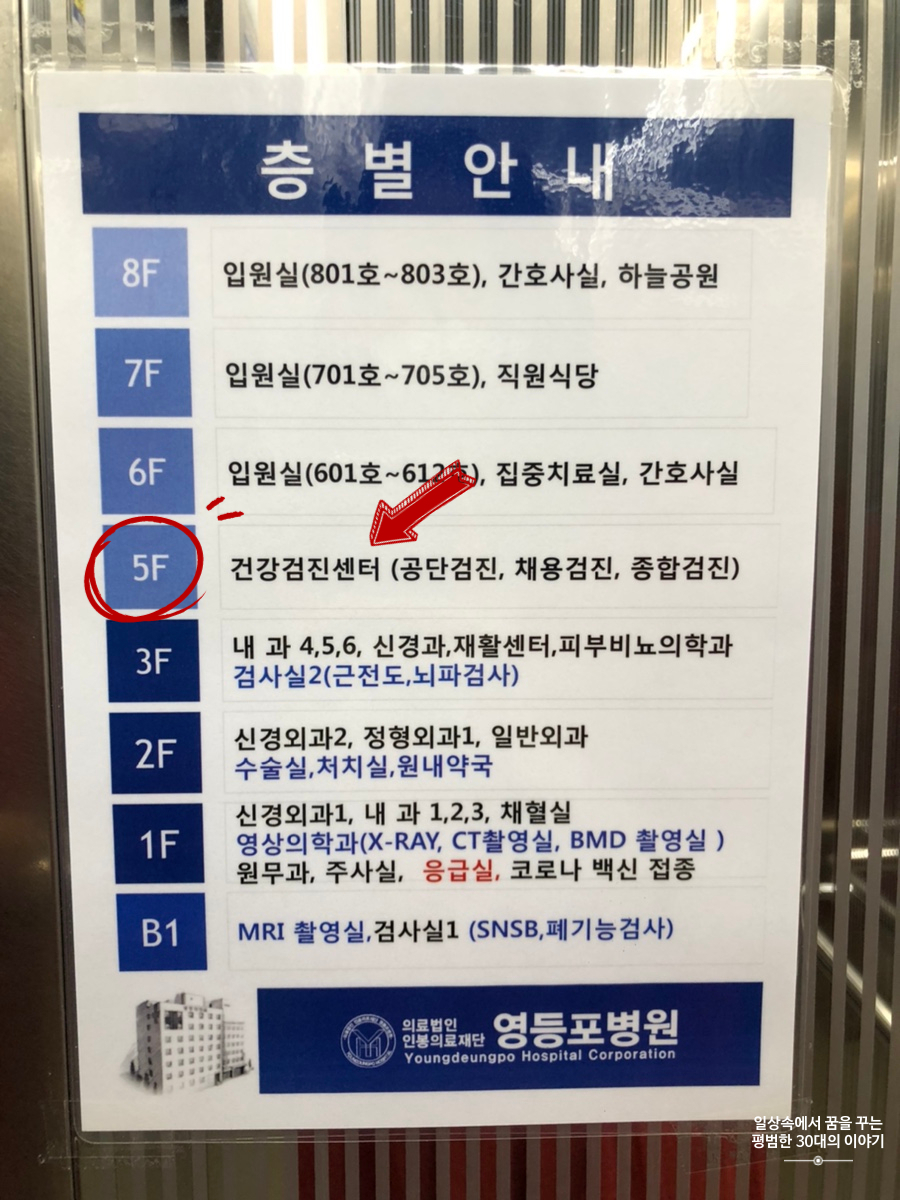 영등포 병원은 영등포 구청 바로 옆에 위치하고 있어 찾아가기 어렵지 않다. 운전면허증 1종 보통에 필요한 서류를 받기 위해서는 영등포 병원 5층 건강검진센터에서 5000원을 지불하고 당일 접수를 한 후(당일 접수를 할 때, 운전면허증 1종 보통 적성검사(갱신)을 하러 왔다고 하면 알아서 다 처리해 준다), 시력검사, 청력검사 그리고 의사와 면담(?)을 하면 운전면허증 1종 보통 적성검사(갱신)에 필요한 서류를 발급해 준다. 평일 오후라 그런지 사람이 많지 않아서 30분 만에 완료!