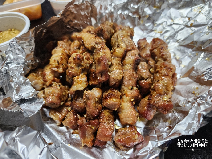 저녁: 배달(양꼬치, 가지볶음밥) |