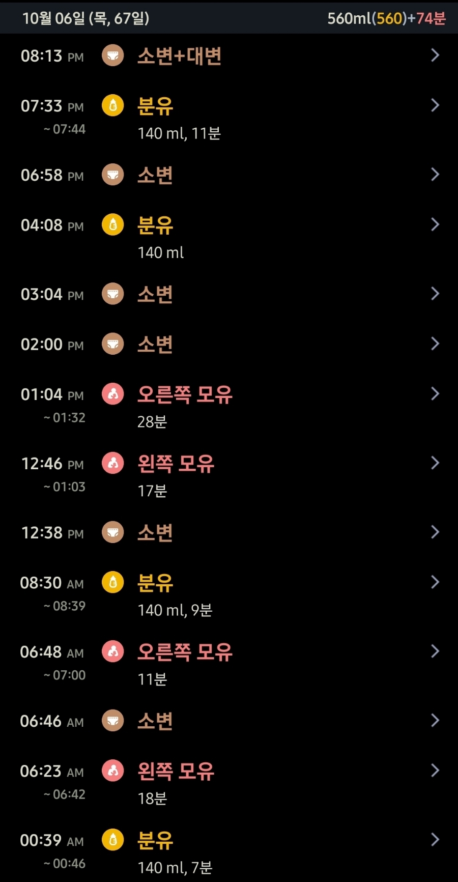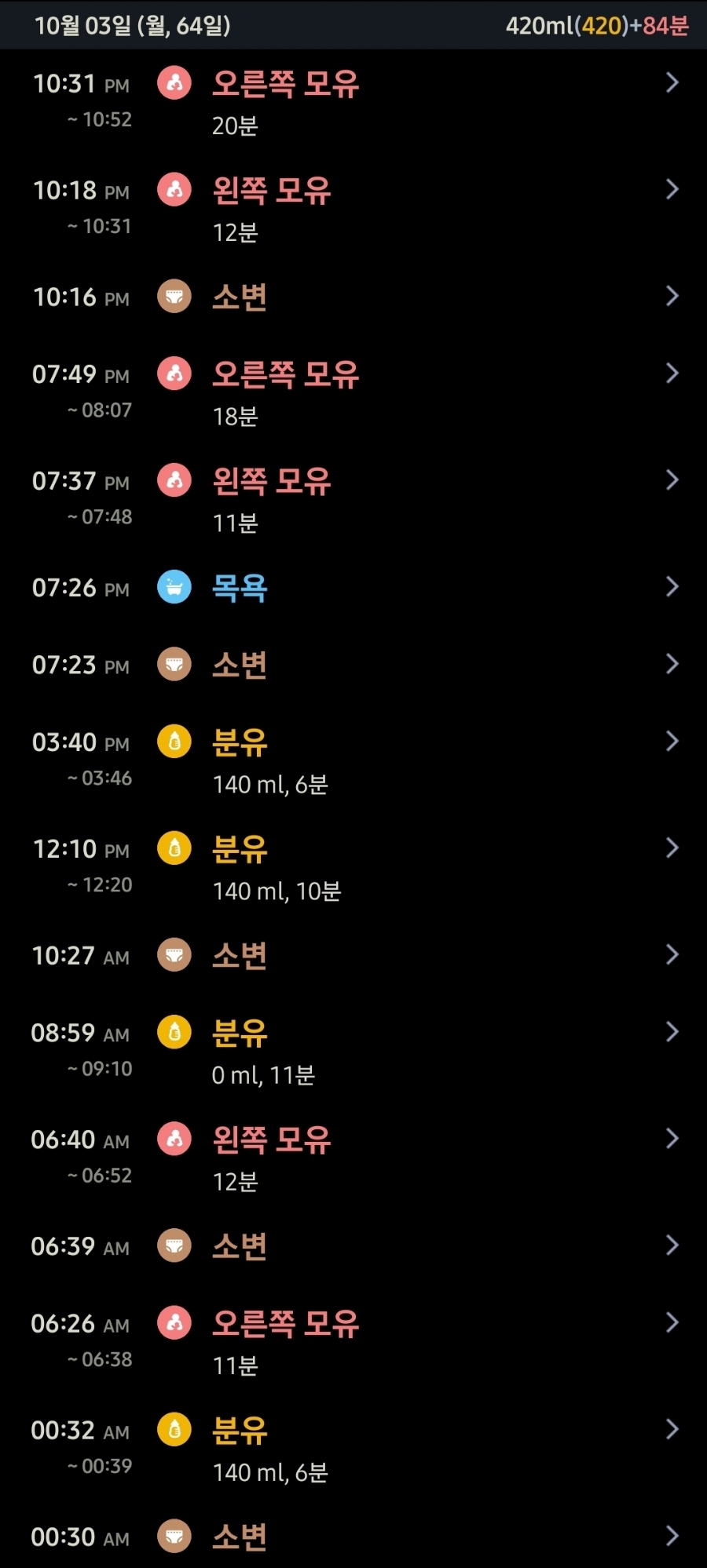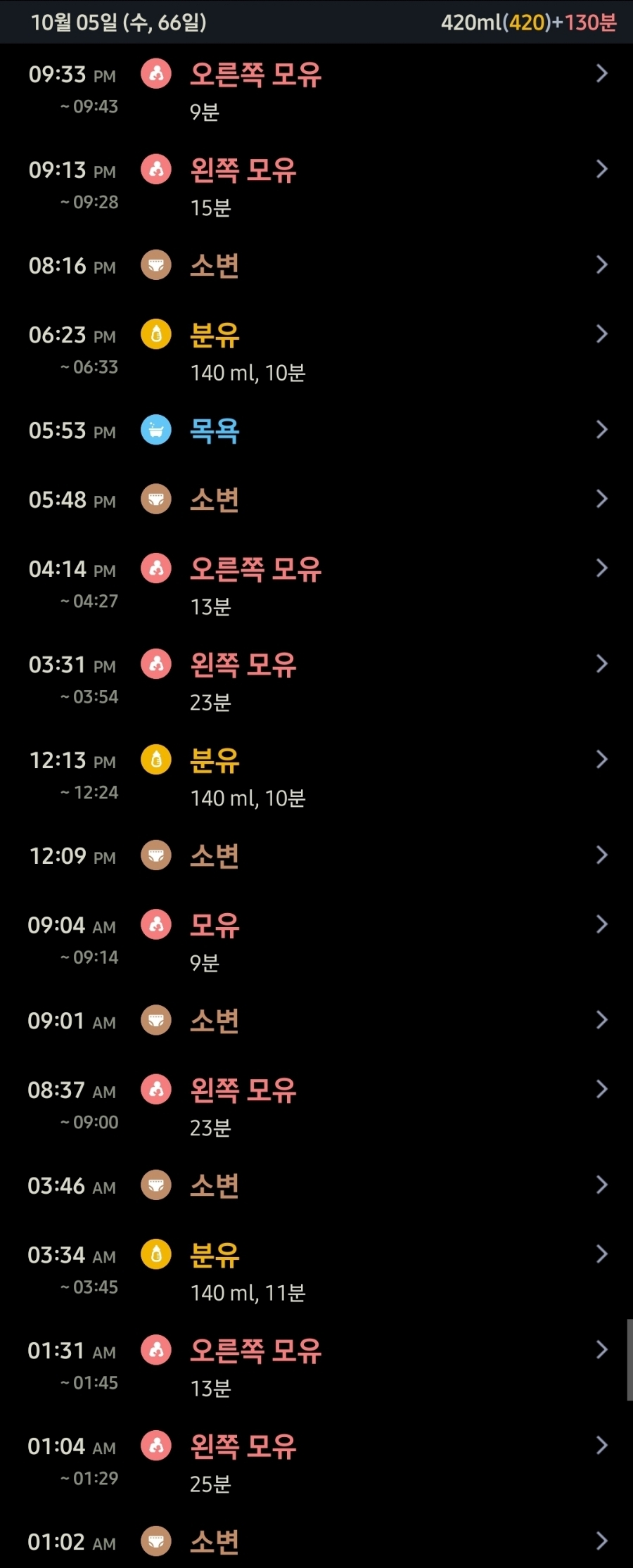 침을 흘리는 정도가 심해져 침으로 옷이 흥건히 젖는 날이 많아지고 있어 턱받이를 필수로 해야할 지경. 잠은 여전히 별로 없어서 낮에는 거의 안 자지만 그래도 밤에는 안 깨고 몇 시간을 푹 자는 편이다. 이제 분유는 퓨어락으로 정착할 듯! 이번주부터 140ml에서 160ml로 늘려서 먹이고 있는데 그럼에도 다 먹고나서도 부족하다는 제스처를 취한다. 하지만 여기서 더 늘리는 건 조금 무리인 것 같아 지켜본 후, 양을 다시 한 번 늘릴 예정이다. 이제 몸무게는 6.25kg으로 꾸준히 잘 늘고 있다.