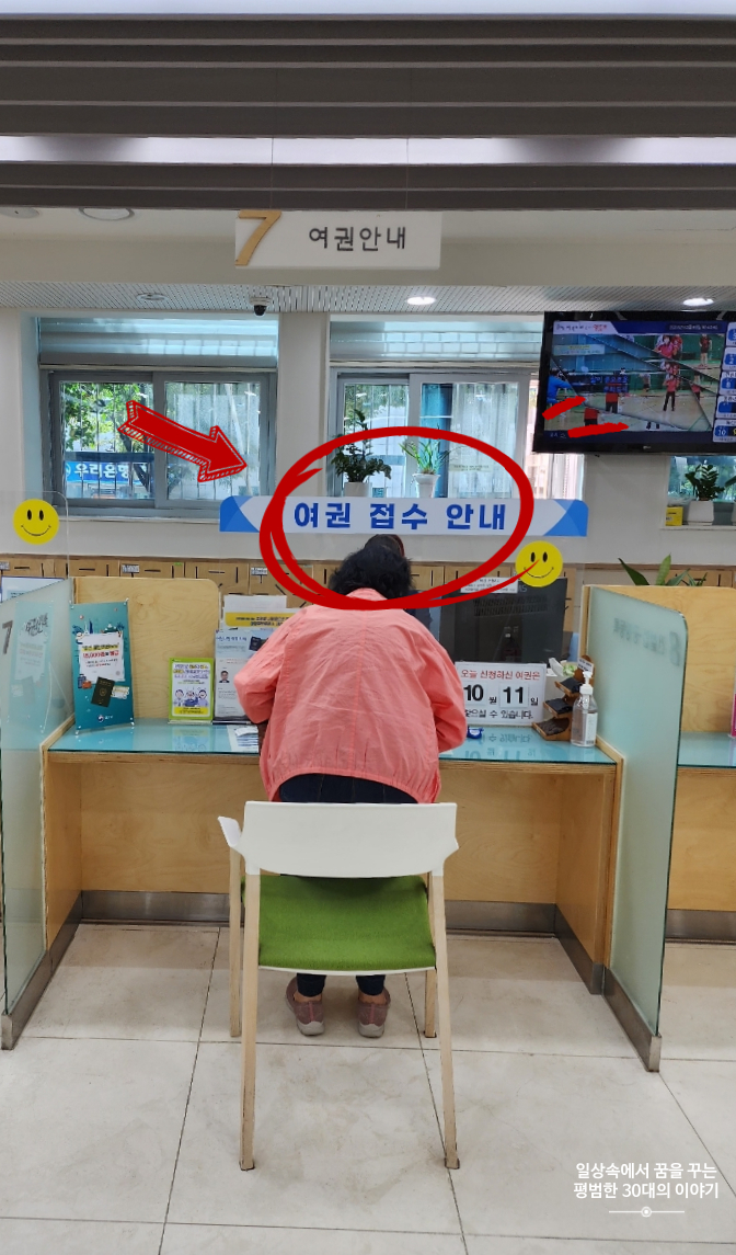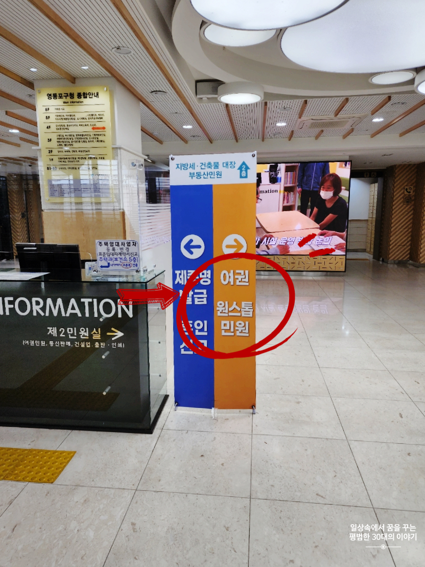 여권 사진을 찍은 다음 날, 내가 살고 있는 영등포구의 구청으로 여권을 만들러 갔다.(거주하고 있는 지역이 아닌 다른 지역의 구청에서도 여권을 만들 수 있음. 동사무소에서는 만들 수 없으니 꼭 구청으로 가야됨!) 영등포구청에 들어서면 바로 여권 원스톱 민원이라는 안내문구를 볼 수 있고 여권 민원실은 영등포구청에 들어서자마자 1층 오른쪽에 위치해있다.(안내문구가 무척 크게 적혀있기 때문에 찾아가기 어렵지 않음)