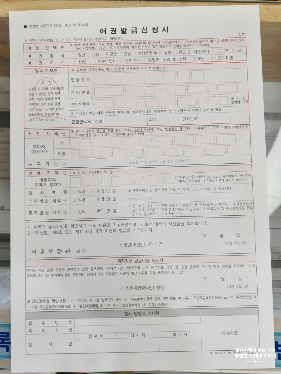 아기 여권 사진도 어른과 마찬가지로 똑같은 규격을 따른다. 새로 바뀐 우리나라 여권. 녹색 여권에 익숙해져 있는 나에게는 아직 낯설다.