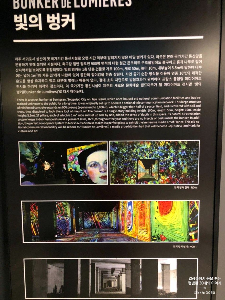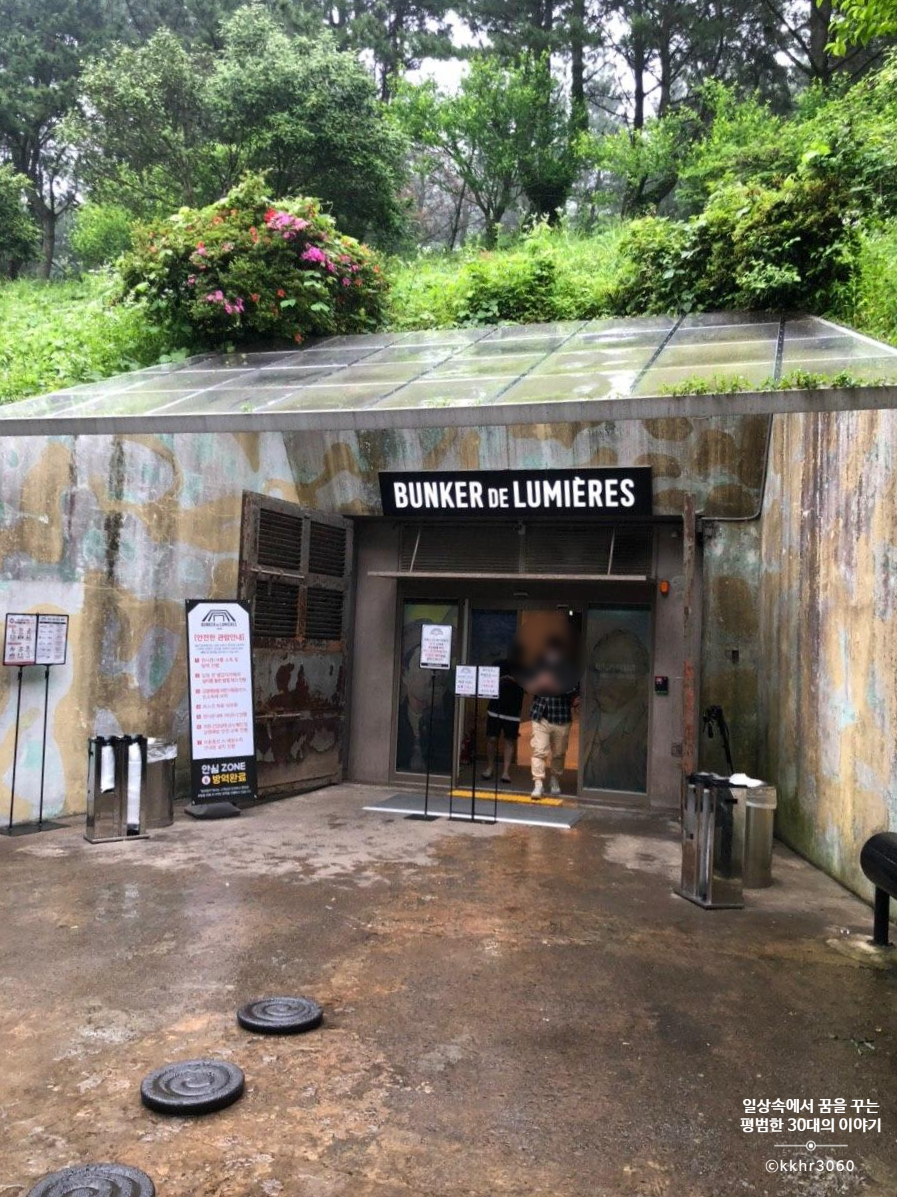 제주도 여행을 6월에 다녀왔는데 이제서야 업데이트하는 제주도 빛의 벙커 갔다 온 이야기. 식당에 관한 포스팅은 손쉽게 글이 써지는데 이런 관광지는 글을 쓰는데 시간이 유난히 걸려 자꾸 미루게 된다. 6월에 코로나로 인해 신혼여행도 다 취소됐겠다 아무 데도 안 가는 거는 좀 너무한 거 아닌가 싶어 제주도로 6박 7일 신혼여행을 다녀왔다. 제주도 날씨야 워낙 오락가락하기 때문에 비 오는 날 가려고 아껴두었던 빛의 벙커를 여행 내내 날씨가 좋았던 탓에 거의 마지막 날 때쯤에 가게 되었다.