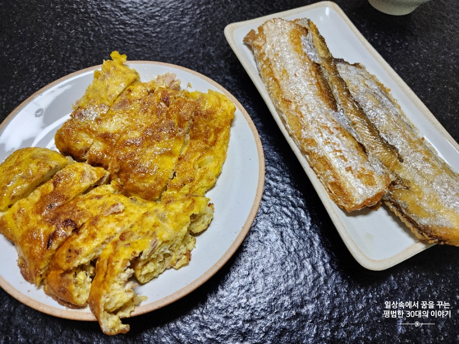 메뉴: 갈치구이, 참치계란말이, 파김치, 깻잎나물, 오이지