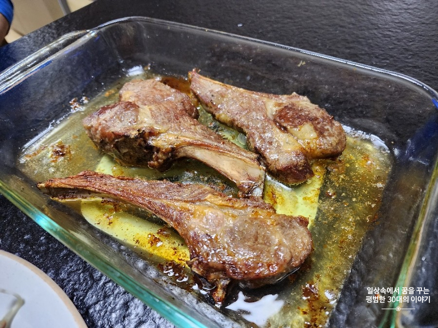 메뉴: 양갈비구이, 닭가슴살 샐러드