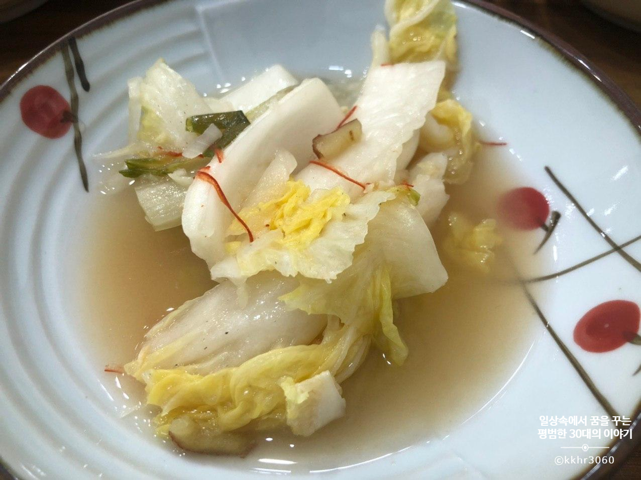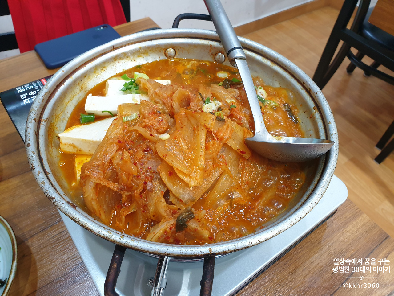 어쨌든 서론이 길었는데 평상시 요리하는 게 귀찮다고 느껴진 적이 거의 없는 나도 가끔은 정말 요리하기가 싫다. 특히 유난히 일이 많아 진이 빠지게 일하고 난 평일 저녁에 말이다. 그래서 나는 지하철역에서 내려 집으로 걸어가는 길에 짝꿍에게 슬쩍 "우리 당신이 좋아하는 김치찜 먹으러 갈까? 내가 이 주변에 맛집 하나 찾아놨어."라고 운을 떼니 짝꿍은 김치찜이라는 말에 바로 오케이! 짝꿍의 TOP 5 안에 들어가는 메뉴 중 하나가 김치찜이다. 김치찜의 고기보다도 김치찜의 김치를 더 좋아할 정도로 푹 양념에 고기와 함께 익혀진 신 김치가 그렇게 맛있단다.