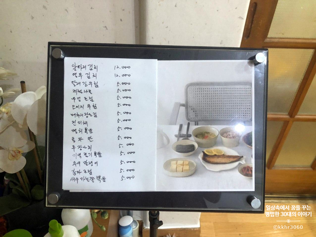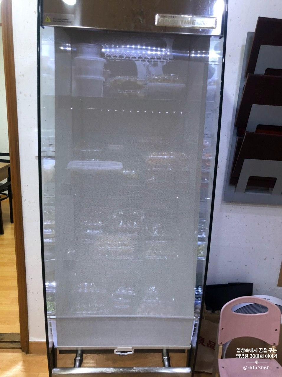 이 식당 반찬이 맛이 있어 반찬만 사 가는 손님들도 있다고 하던데 그 말이 거짓은 아닌가 보다. 입구에 반찬별 가격과 반찬 냉장고가 놓여있는 걸 보니 말이다. 반찬을 사 본 적이 한 번도 없어서 이 정도면 가격이 비싼 건지 안 비싼 건지는 모르겠다.