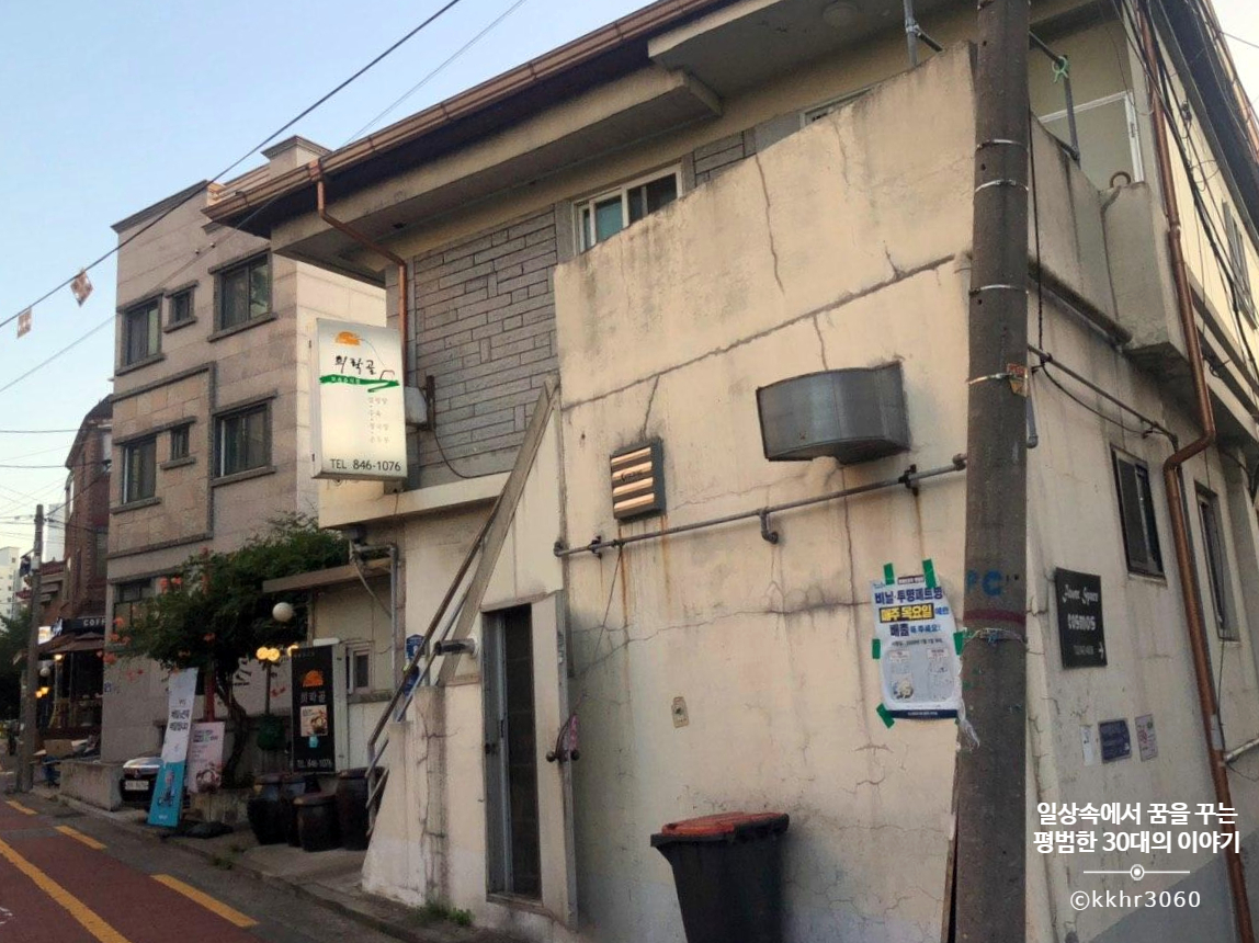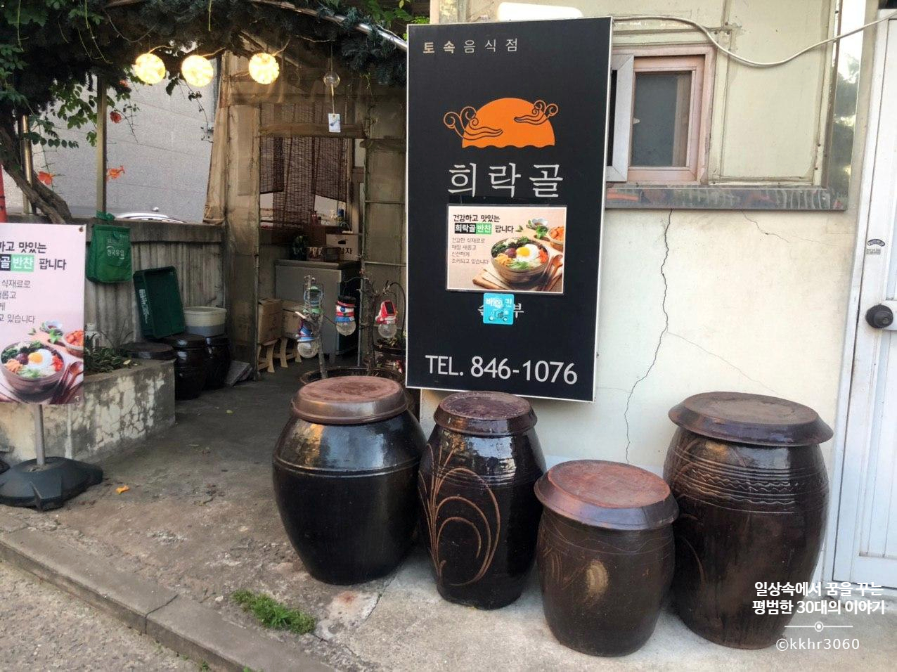 우리 집에서 멀지 않은 곳에 있는 식당인데 일반 주택을 개조해서 식당으로 사용하고 있는 것 같았다. 밖에 장독대 몇 개와 오래된 간판만이 이 집이 식당임을 알 수 있게 해준다.