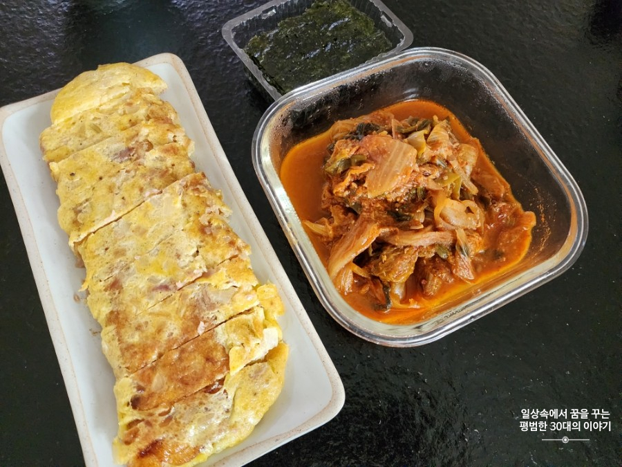 메뉴: 계란말이, 조미김, 등갈비 김치찜
