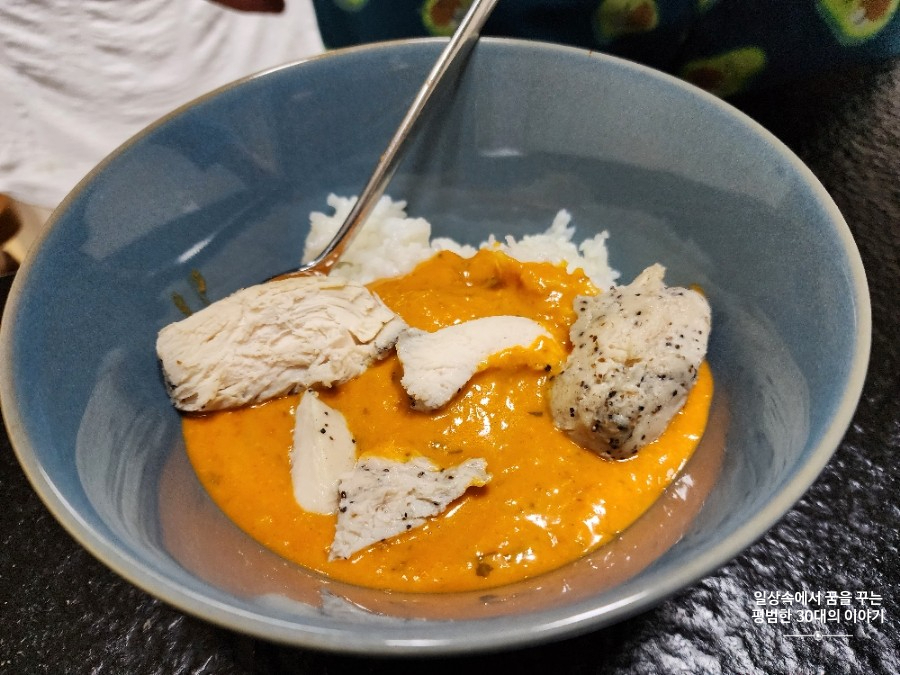 저녁: 풋팡퐁커리 with 닭가슴살, 마커니커리 with 닭가슴살 |