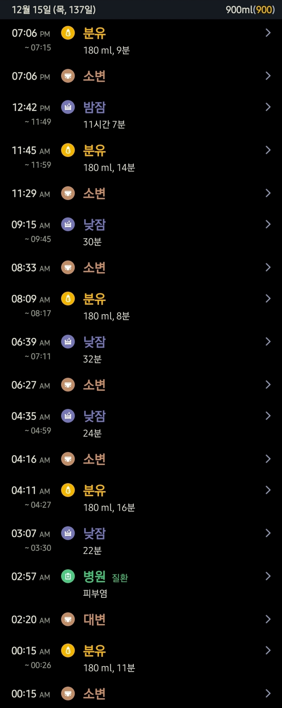 기저귀 주변으로(엉덩이, 배 주변) 알레르기같이 오돌토돌한 게 너무 많이 올라와서 병원에 갔으나 알레르기 같지는 않다고 했다. 연고를 처방해 줘서 하루 정도 바르고 나니(스테로이드라 하루에 한두 번 이상, 일주일 이상 바르는 것은 권하지 않음) 금방 나아서 깨끗한 피부로 시부모님을 만나 뵈러 갈 수 있었다.