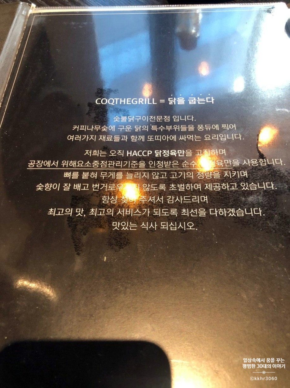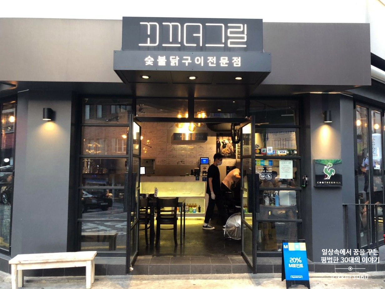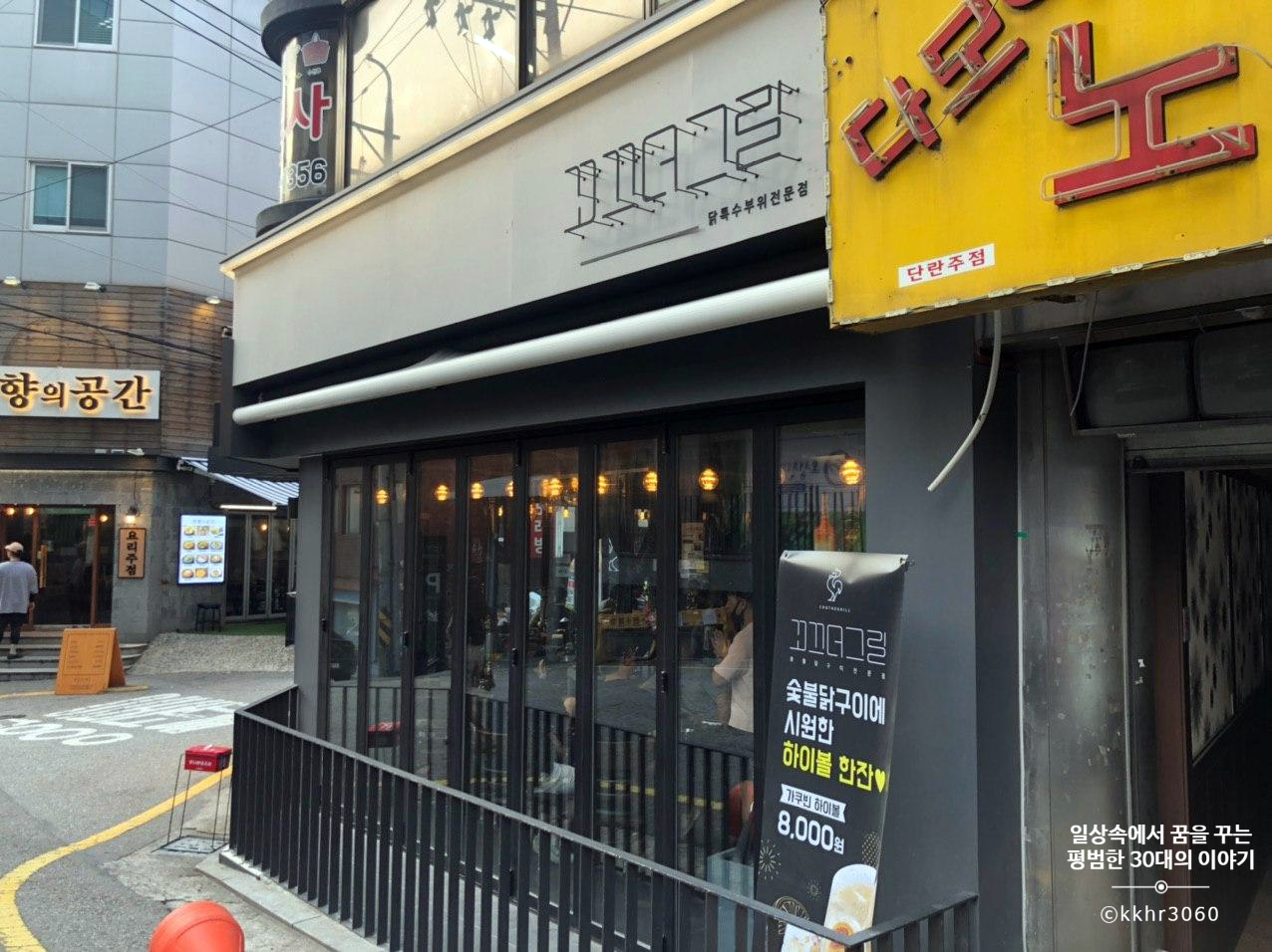 나의 생일을 이틀 앞둔 평일 저녁, 생일 당일엔 집에서 직접 요리를 해서 먹을 예정이었고 생일 전날엔 엄마 집에서 식사를 할 예정이었기 때문에 비록 생일 이틀 전이라고 하더라도 기분도 낼 겸 짝꿍 회사 근처에서 외식을 하기로 했다. 그런데 짝꿍을 향한 사랑이 남다른 나여서 그런지 짝꿍이 좋아할 만한 메뉴를 파는 식당만 눈에 들어온다. 짝꿍은 다양한 음식을 좋아하는데 그중에서도 안 먹어본 새로운 요리 혹은 새로운 시도를 한 요리를 좋아한다. 그래서 고르게 된 식다 꼬끄더그릴. 닭 목살이라는 부위는 나에게도 생소했지만 무엇보다 그런 닭 목살을 또띠아에 싸먹는 건 더 생소했다. 그래서 맛이 어떤지에 대한 리뷰는 살펴보지도 않고 메뉴만 보고 결정!