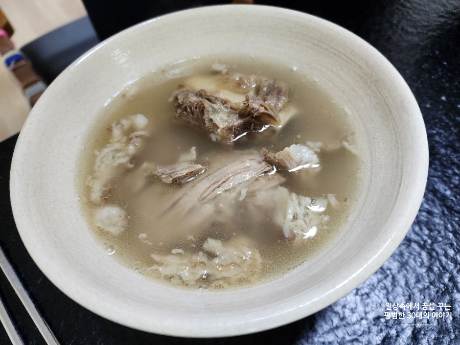 메뉴: 갈비탕, 깻잎장아찌, 조미김, 나물2종, 김치