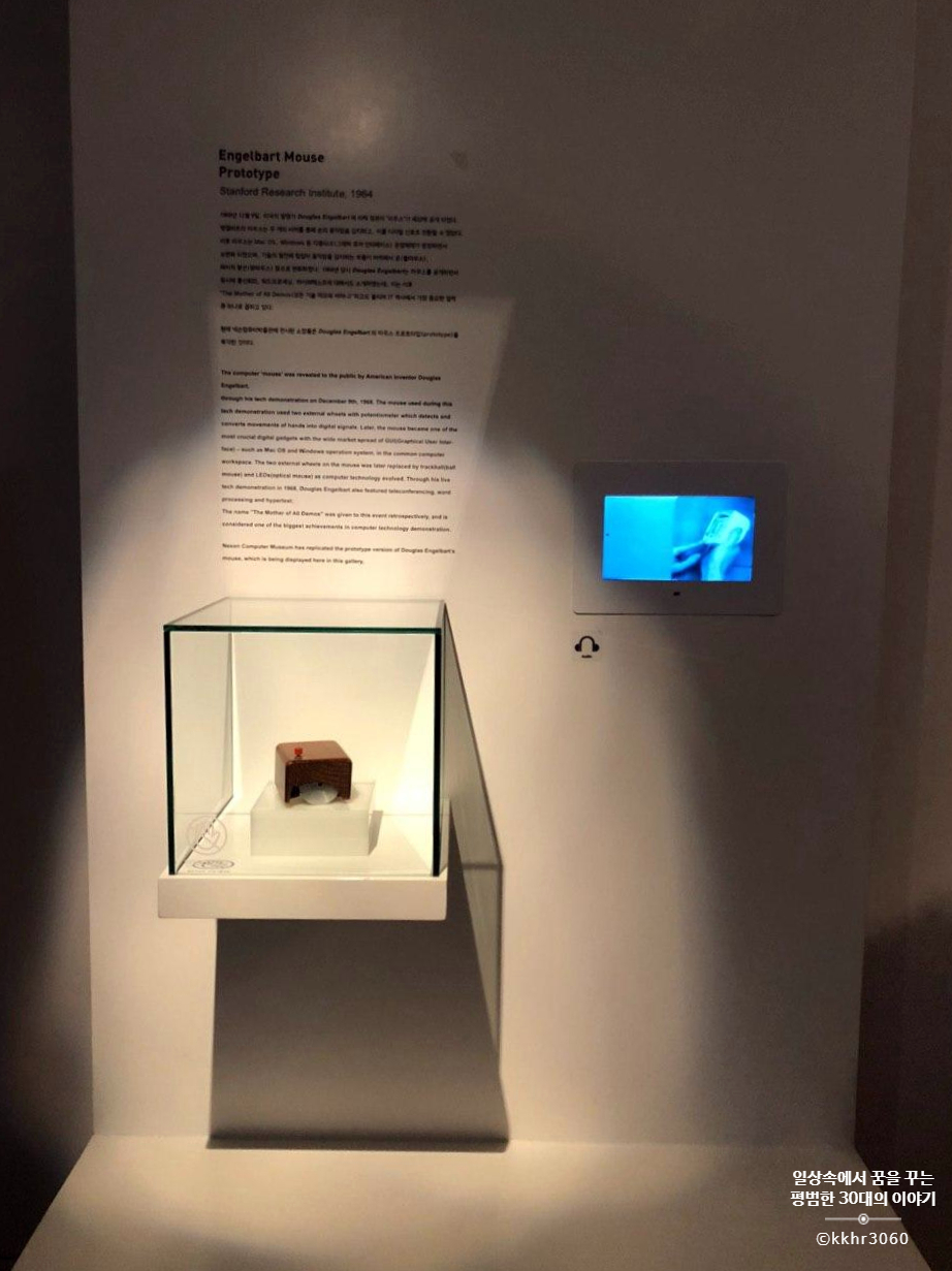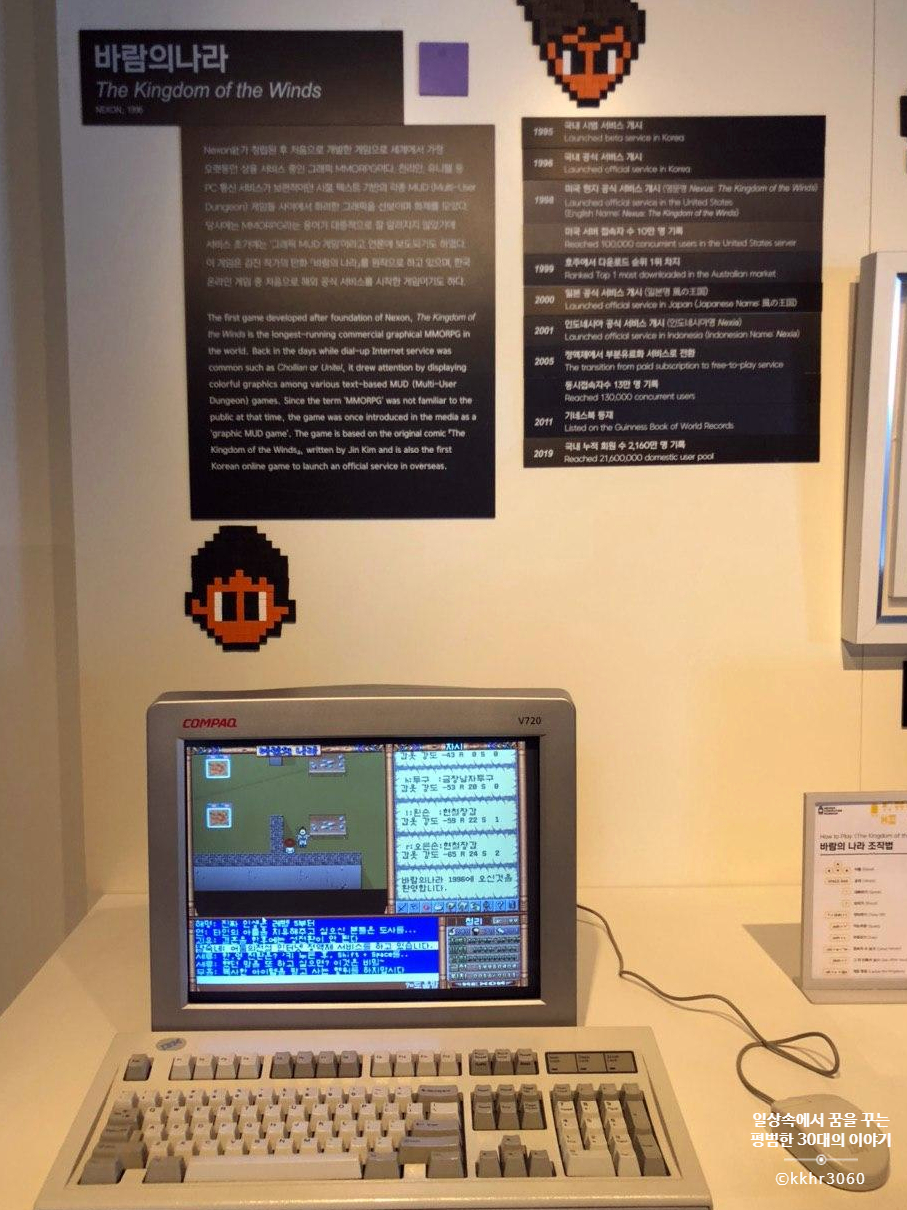 이곳은 1층 Welcome Stage. 컴퓨터 저장 장치, 그래픽 카드, 사운드 카드와 같은 내부 기기들의 발전사를 체험할 수 있는 곳으로 Apple사 최초의 컴퓨터와 최초의 마우스인 엥겔바트 마우스를 볼 수 있다. 그리고 지금의 넥슨을 있게 한 '바람의 나라' 디지털 아카이빙 과정도 관람할 수 있다.