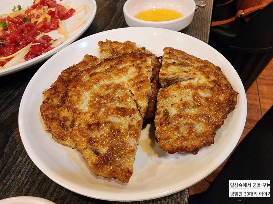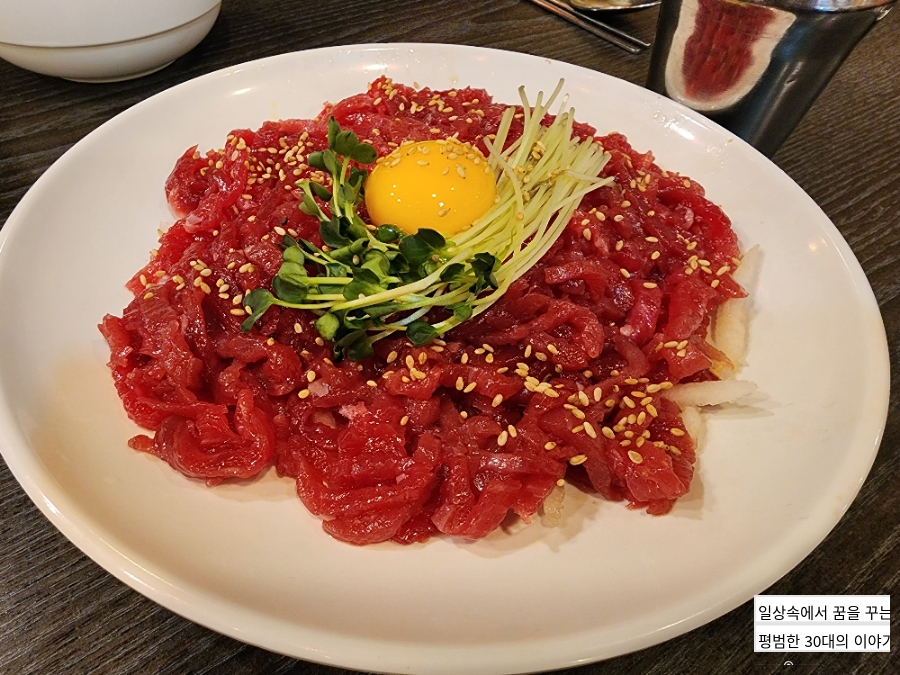 메뉴: 외식(광장시장에서 가족들이랑 육회, 녹두전, 소머리국밥, 떡갈비, 고기완자)