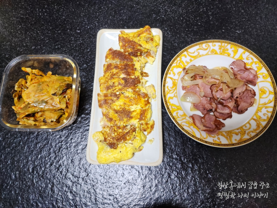 저녁: 훈제오리고기구이, 참치계란말이, 짜샤이 |