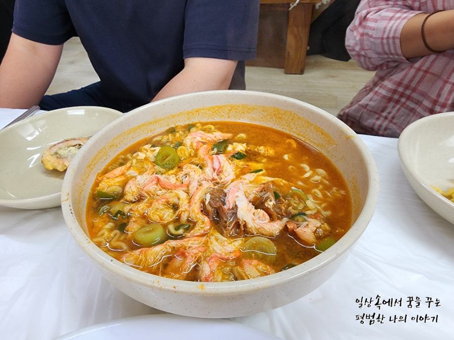 점심: 속초여행(아마이홍게에서 아바이순대, 오징어순대, 게살라면 그리고 게살칼국수)