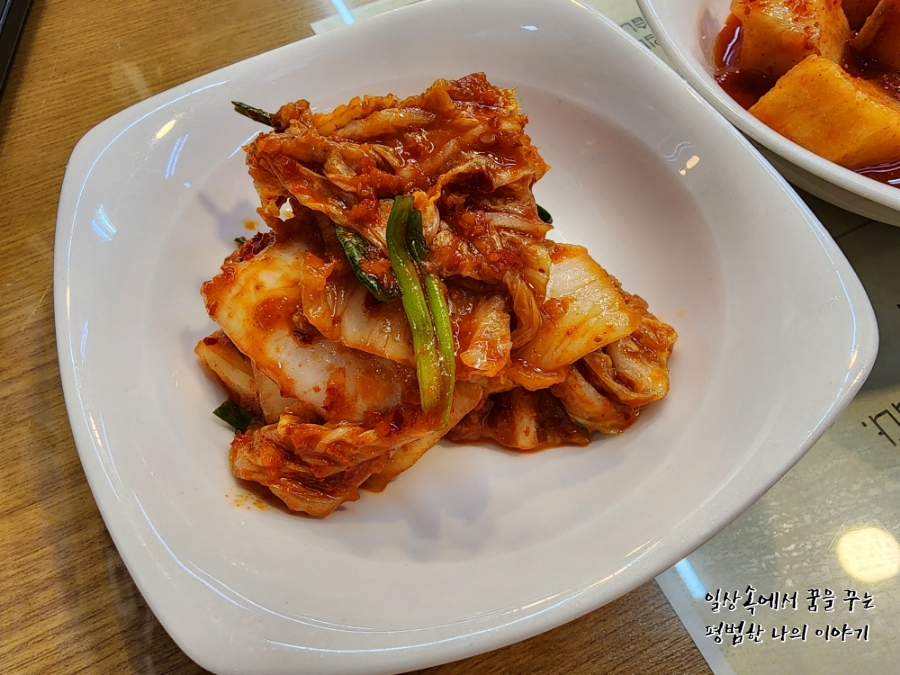 메뉴: 김치찌개, 고사리나물, 도라지무침, 시래기나물