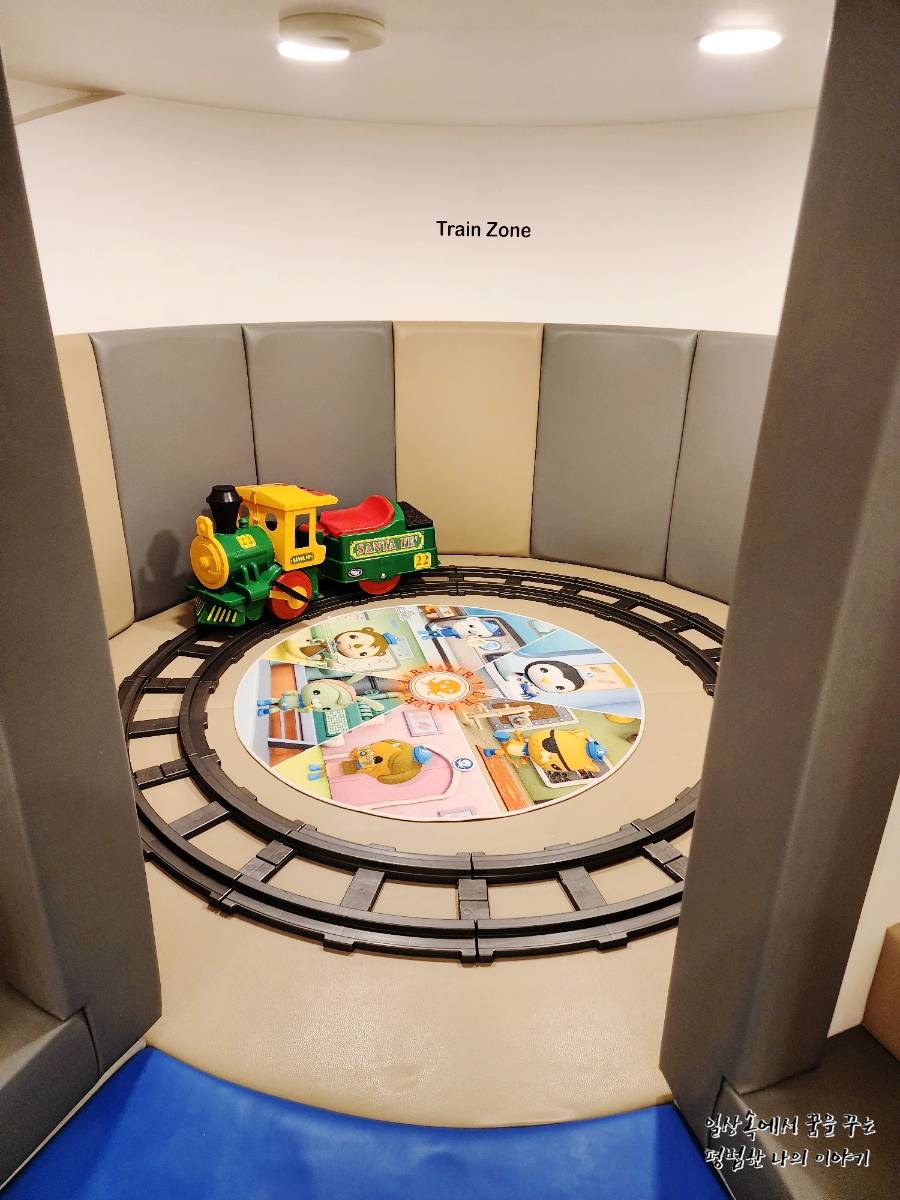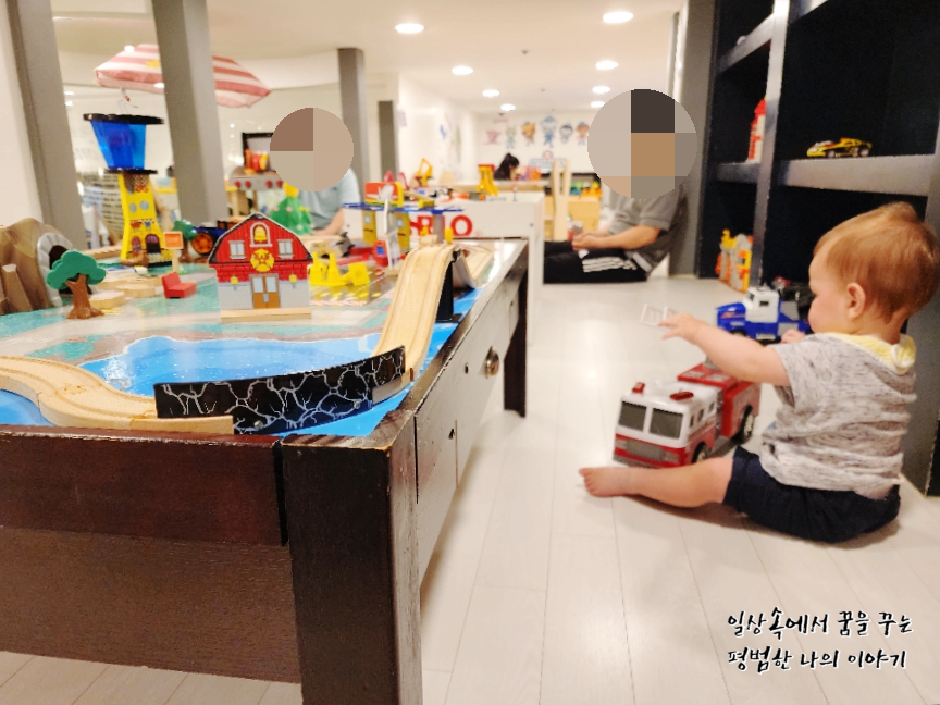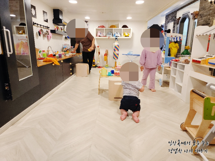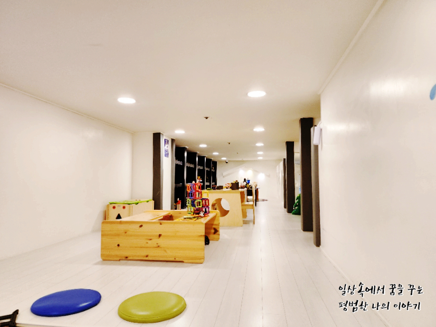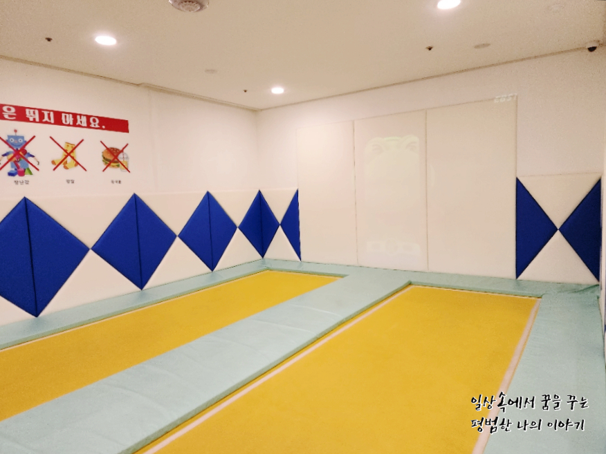 내부는 생각보다 아담한데 그래도 구석구석 다양한 놀 거리가 있고 트램펄린 공간도 꽤나 넓다. 무엇보다 키즈카페 중에 우리 집 아기가 좋아하는 편백나무 공간이 없는 곳도 꽤 있는데 여기는 있어서 거기서 꽤 오랜 시간 놀았다. 생긴지는 몇 년 된 건지 인테리어가 다소 노후돼 보이기는 하나 관리가 잘 되어있었는데 알고 보니 관리하시는 분이 계속 청소를 하면서 돌아다니시더라.