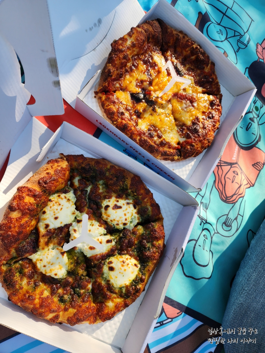 저녁: 배달(여의도 한강공원에서 피자) |