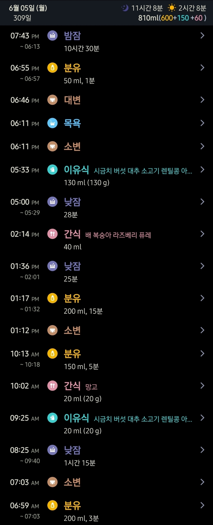*특이사항: 빨간 반점이 올라옴(구내염이 끝난지 얼마 되지 않아 빨간 반점이 알레르기처럼 온몸에 올라오길래 혹시 이것이 수족구인가 싶어 한걸음에 병원으로 달려갔다. 다행히 수족구는 아니었고 구내염은 완치 판정을 받았다. 의사 선생님 말로는 뭐에 물린 것 같다는데 도대체 뭐에 물렸길래 이렇게 온몸에 다 올라오나 싶긴 하지만 다행히 하루 이틀 사이에 확 가라앉아서 마음을 내려놓았다.) 여전히 구내염에 걸렸던 이후로 입맛이 돌아오지 않아 이유식 거부가 심해졌다.