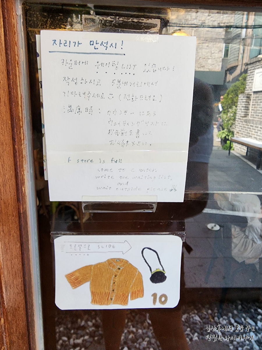 다른 날도 아니고 주말에 그것도 핫플인 동교동에 아기와 커피를 마시러 갔으니 당연히 갈 수 있는 곳이 많지 않았다. 다행히도 우연치 않게 발견한 곳에 우리를 위한 자리가 딱 한 곳 남아 있었다. 게다가 노키즈존이 점거한 동교동에 노키즈존이 아닌 곳이었다. 이제 엄마인 나는 핫플에 갈 수가 없다는 슬픈 현실... 핫플에는 아쉽게도 노키즈존이 너무 많다. 아이가 없었던 시절이 있었기에 그 마음이 이해가 되면서도 서운한 마음이 드는 건 어쩔 수 없다.