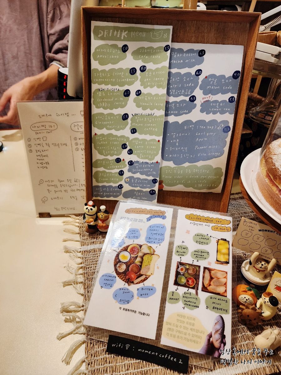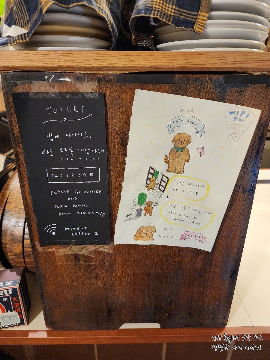 어쨌든 노키즈존이 아닌 데다가 우리를 위한 자리가 남아있다는 것만으로도 감지덕지였는데 분위기 또한 너무 마음에 들었다. 한창 일본 여행을 다니던 때에 찾아다니던 그런 작고 귀여우면서 따뜻한 분위기 팡팡 풍기는 카페였다. 눈물이 날 정도로 행복한 시간이었다. 이런 분위기의 카페에서 여유 있게(?) 한 잔 마시는 커피가 얼마 만이던가. 물론 아기와 함께라 여유 있게라고 하기에는 아기를 재우고 간식 먹이고 하느라 분주했지만 그냥 그 공간 속에 있다는 것만으로도 너무 좋았다.