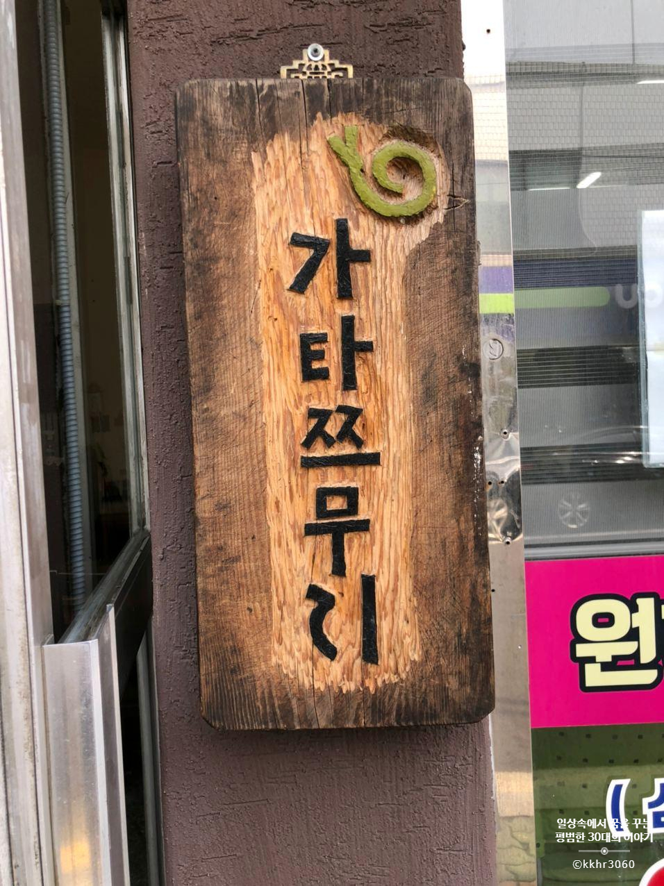 이전에 대우전자 대리점으로 사용되었던 공간을 주인장의 감성대로 조금 변화를 주어 사용하고 있다. 매달 주인장 본인의 이야기를 담은 글과 그림을 입구에 휴무 달력과 함께 붙여놓는다고 하는데 읽는 재미가 꽤 쏠쏠하다. 가타쯔무리 페이스북 계정에 방문해보니 이전에 게재했었던 그림과 글들을 모두 볼 수 있더라.