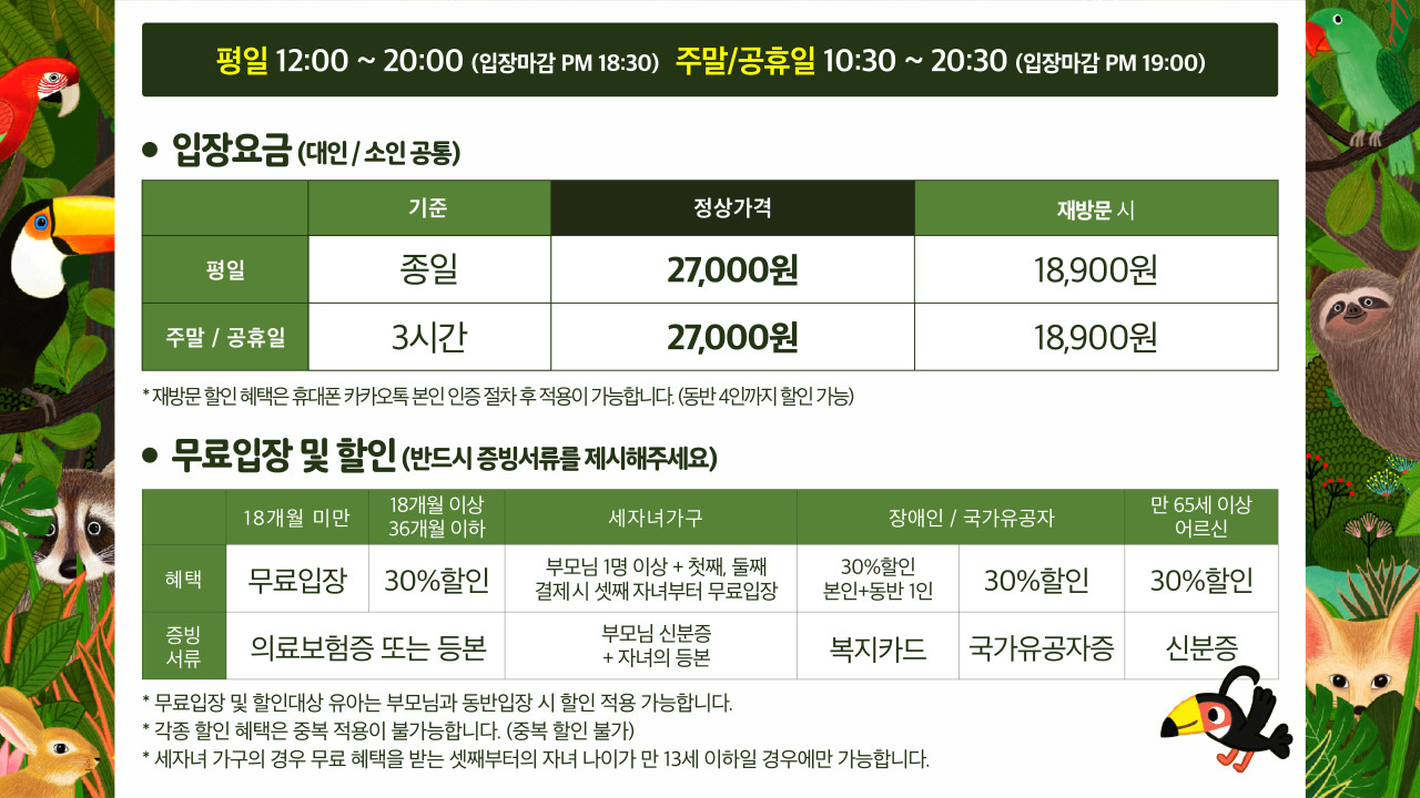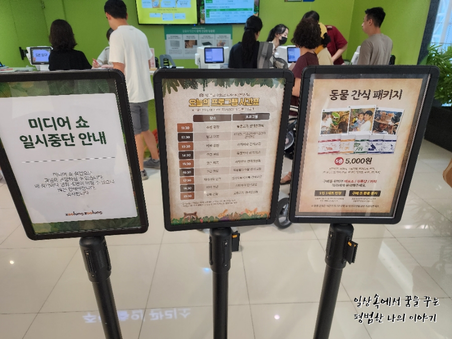 어쨌든 우리는 가장 사람이 많이 붐빌 것으로 예상되는 주말 점심시간 직전에 방문했는데 아니나 다를까 사람이 진짜 많더라. 대기표를 뽑고 입장권을 구매하기 위해 30분 이상을 기다린 것 같다. 주렁주렁 영등포 타임스퀘어점은 특이하게도 4층에 매표소가 있고 5층에 입구가 있다. 그러니 4층에서 표를 구매한 뒤 5층으로 올라가면 된다. 우리는 추가로 동물 간식 패키지도 5000원에 구매했다. 나중에 돌아다녀 보니 동물 간식 패키지 덕분에 더욱 공간을 잘 즐길 수 있었다.