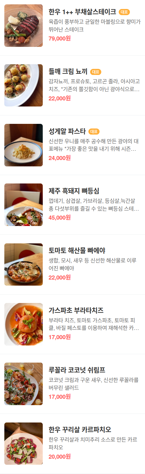 기타 사항: 예약 가능(식사 시간은 예약한 시간으로부터 두 시간으로 제한, 주말 및 공휴일은 한 시간 반으로 제한), 주차 가능, 아기의자 없음