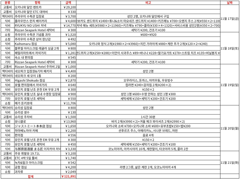 오키나와 4박 5일 여행 일정 (2) | 2023.11.24 |