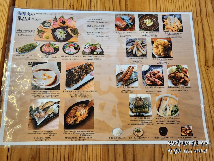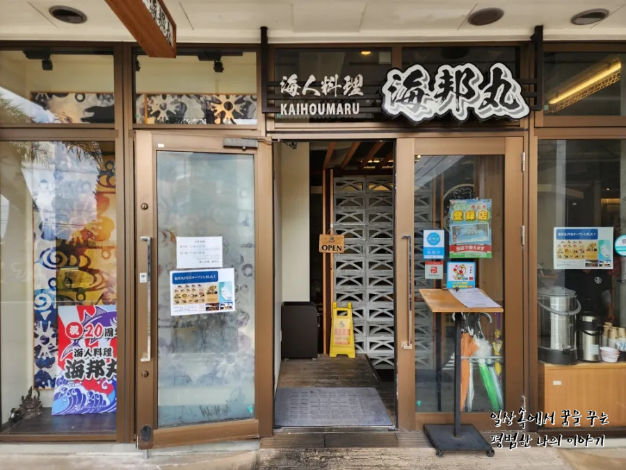 아침부터 추라우미 수족관을 구경하고 점심을 먹기 위해 근처 음식점을 알아보던 중 발견 한 Kaihomaru! 점심과 디저트를 한 번에 해결할 수 있고 추라우미 수족관에서 가까워 선택하게 되었다.(음식점 앞에 스타벅스와 블루씰 아이스크림 가게가 있음) 우리는 점심시간 전이라 다행히 자리가 꽤 있었는데 얼마 지나지 않아 손님이 물밀듯 밀려들어왔다. 그래도 안에 좌석이 꽤 많고 회전율이 빨라 오래 기다리지 않아도 되는 것 같더라.