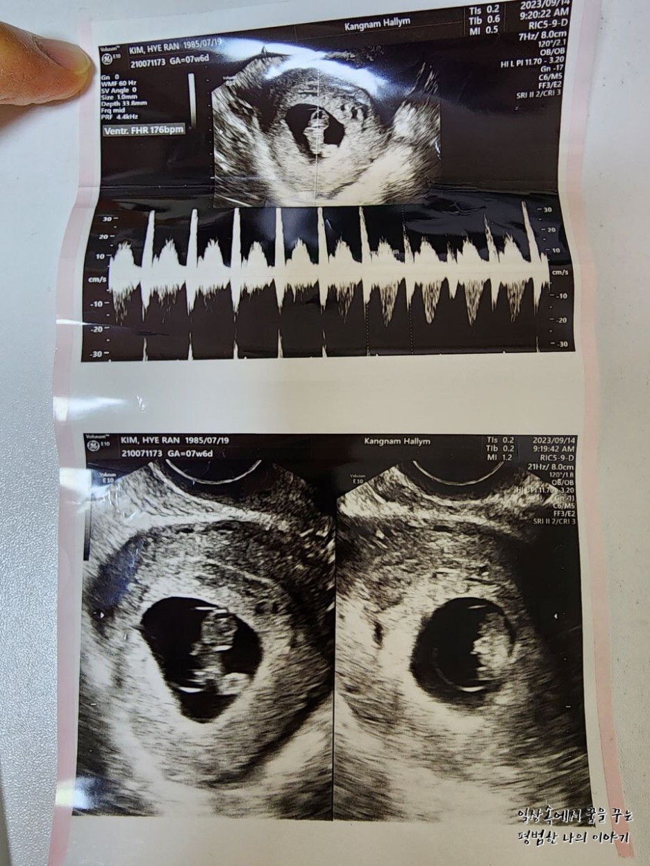 일주일 만에 다시 만난 레오나는 그 새 무럭무럭 자라 있었는데 너무나 귀여운 젤리 곰 모양을 하고 있었다.(초음파를 통해 젤리 곰 형태의 귀여운 태아를 볼 수 있는 주차 수는 보통 8~9주이므로 일부러 이때를 맞춰 산부인과에 방문하는 산모도 있다) 얼굴, 손 그리고 발의 형태를 모두 볼 수 있었는데 둘째인데도 여전히 내 뱃속에서 생명체가 자라고 있다는 사실은 늘 신기하다. 그리고 매번 산부인과에 방문해 성장해 있는 모습을 볼 때마다 감탄한다. 아무래도 첫째 육아를 하면서 임신 과정을 겪는 거라 첫째 임신 때보다 덜 조심하게 되고 덜 신경 쓰게 되고 산부인과도 덜 가게 돼서 항상 미안한 마음이 든다.