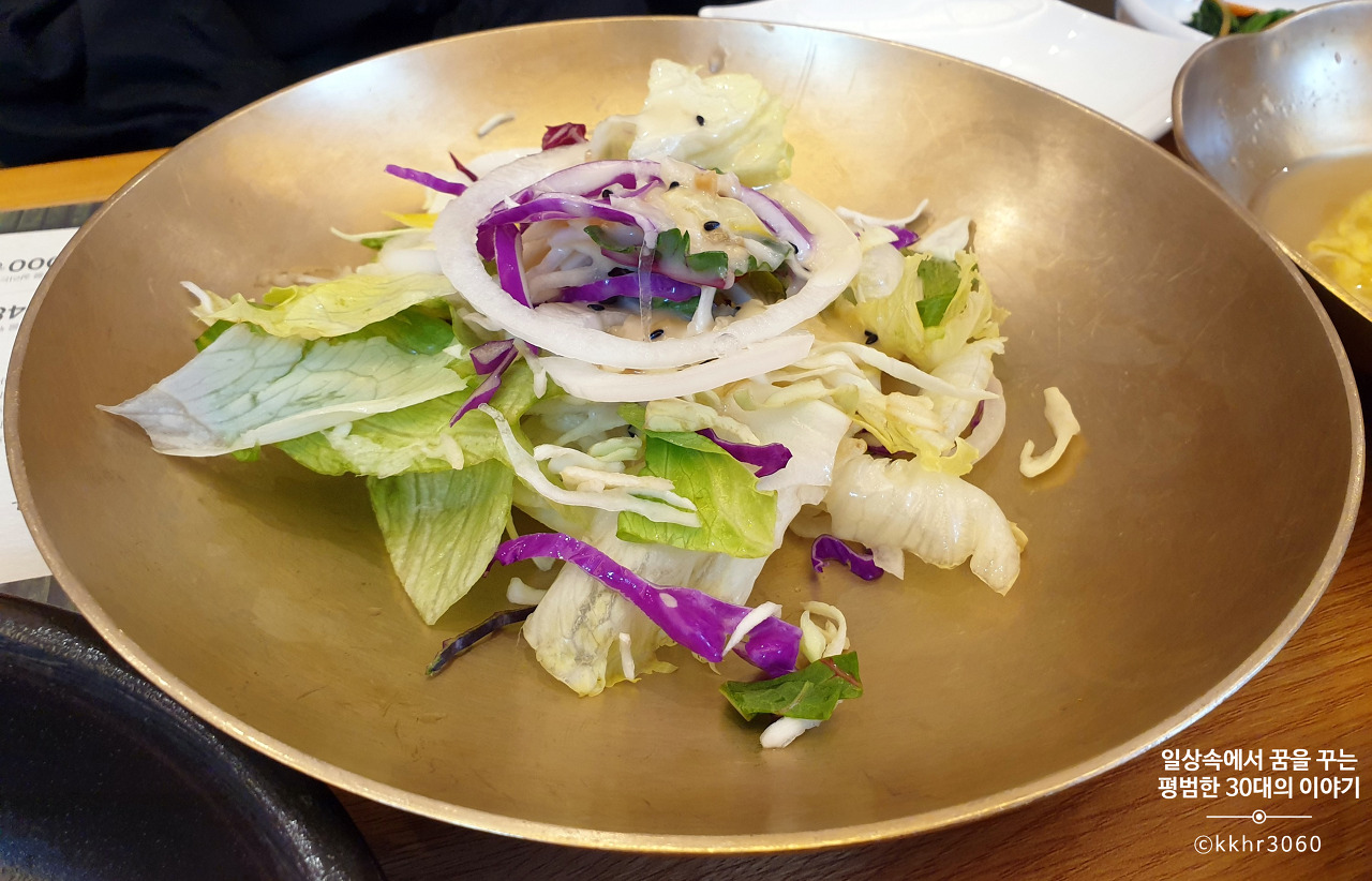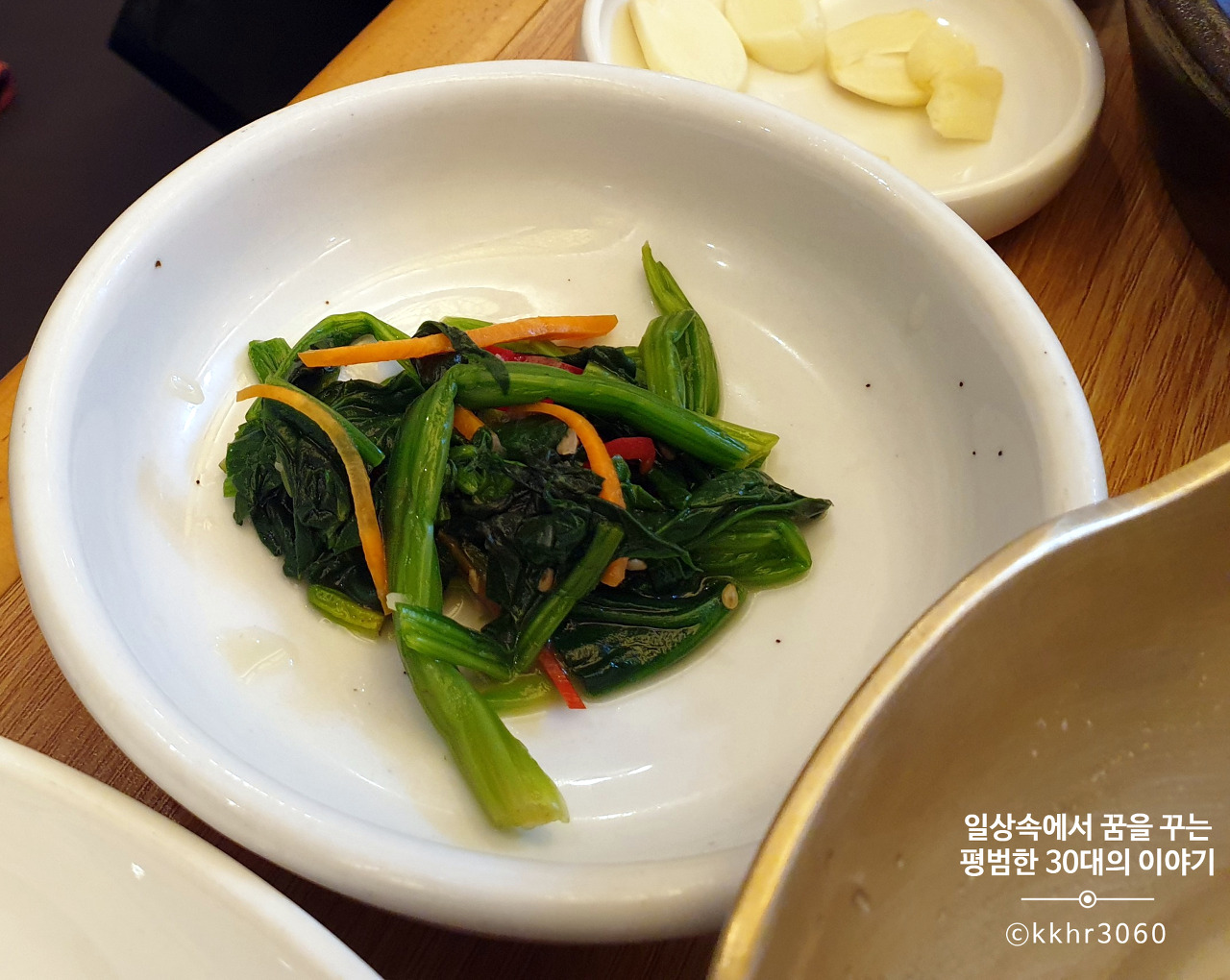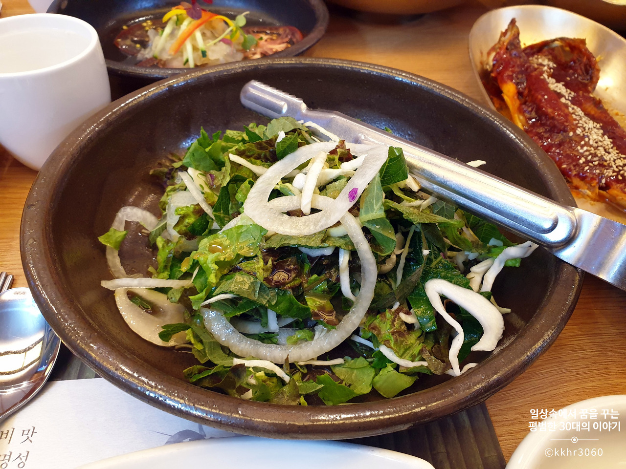개인적으로 고기를 구우면서 나는 냄새와 그 냄새가 옷에 배는 것을 별로 좋아하지는 않는데 이렇게 구워서 나오니 냄새가 안 나서 좋긴 한데 아무래도 맛이 좀 떨어지더라. 고기는 자고로 직접 그때 그 때 구워서 따뜻할 때 먹어야 하는데 아무래도 구워져서 나오니 아무리 자리에서 데워서 먹는다고 해도 식감이 딱딱하고 맛도 떨어졌다. 그리고 무엇보다 돼지갈비가 다른 식당에 비해 가격대가 있었음에도 불구하고 그 값어치의 맛을 느낄 수 없었다. 얇고 퍽퍽하다고 해야 할까. 이 집의 메인 메뉴인 소갈비를 먹어봐야 알겠지만 우선 돼지갈비는 아쉬움이 남는 맛이었다.