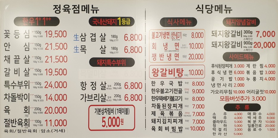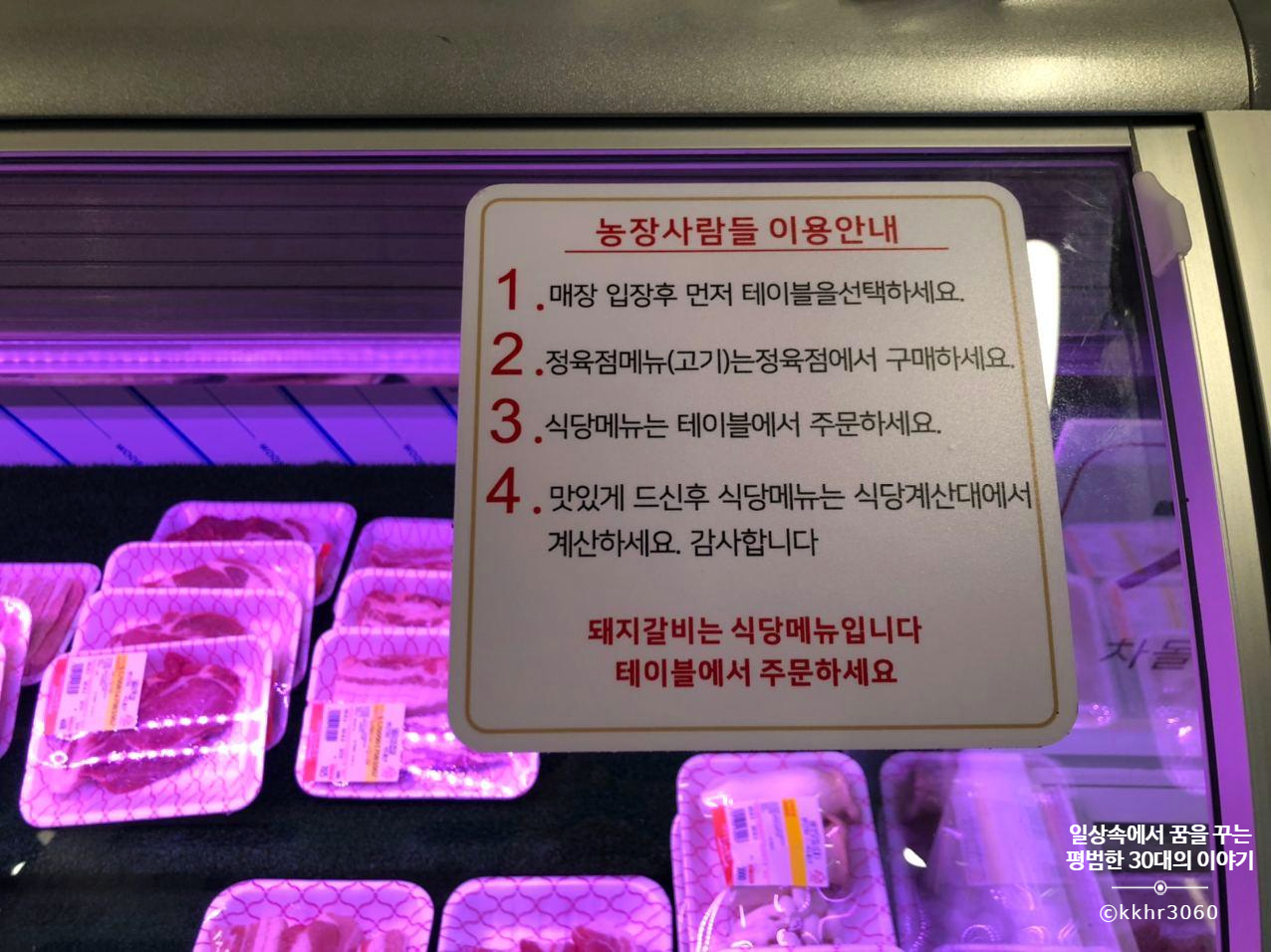 입구에 크게 '24시간 식사됩니다'라고 적혀있더라. 24시간 영업하는 고깃집은 처음인 듯. 물론 나도 한창 성장기에는 집에서 아침부터 고기를 구워 먹기도 했었는데 30대가 되어 소화력이 떨어지다 보니 아침부터 고기를 구워 먹는 일은 없다. 나에게 고기란 저녁 메뉴. 어쨌든 24시간 영업하는 고깃집이라는 게 신기할 따름이다. 하기야 정육점도 같이 하고 있으니 급하게 아침부터 고기를 사야 할 때 이곳에서 고기를 시도되긴 하겠다.