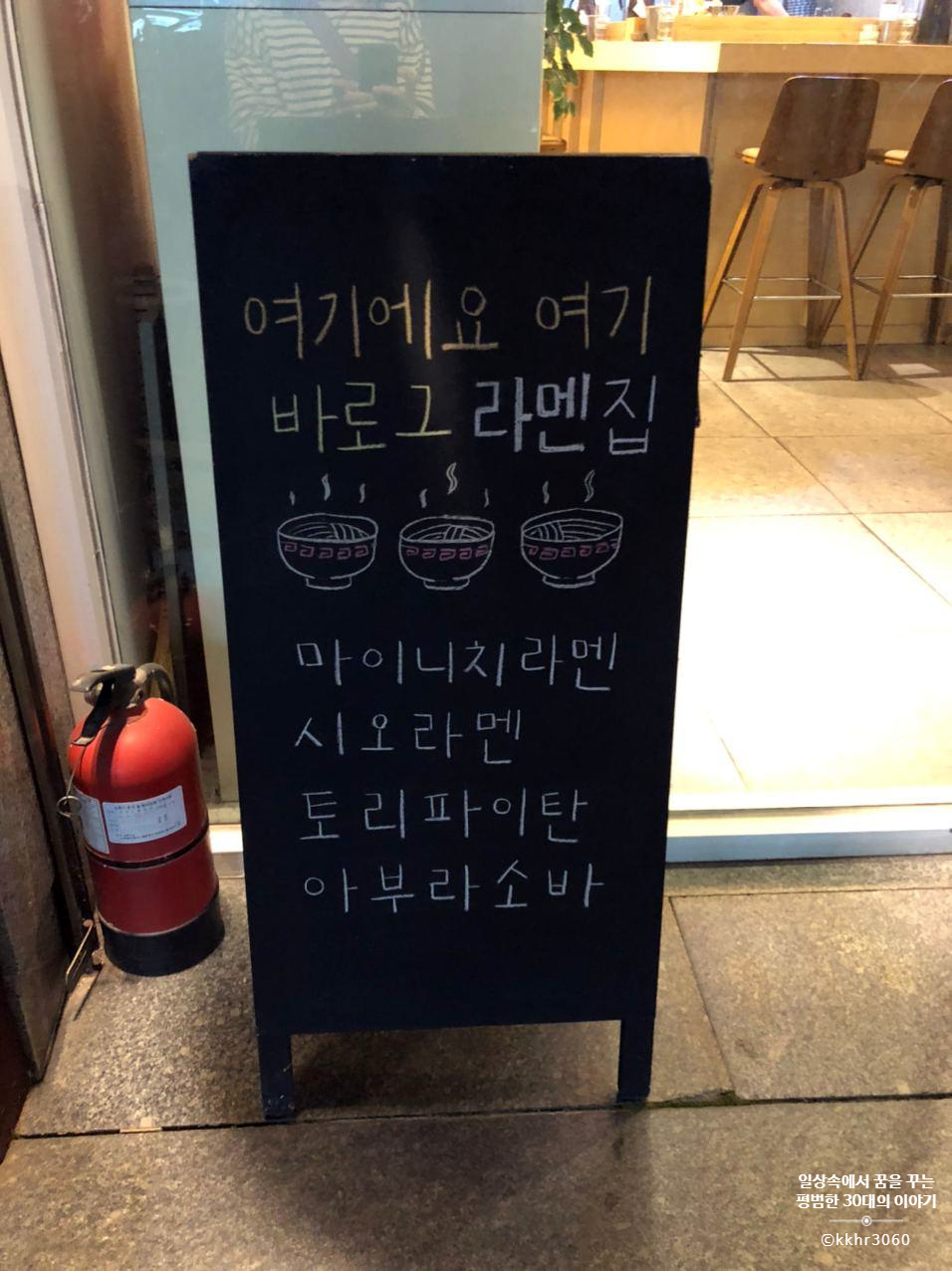 다음에 못 먹어본 아부라소바와 시오라멘 먹으러 또 방문해봐야겠다. 나는 라멘 마니아도 아니고 라멘에 대해 잘 알지도 못하지만 내 입맛에 다른 일본 라멘 식당처럼 너무 육수가 과하게 진해서 국물이 느끼하게 느껴진다거나 짜다거나 하지 않고 담백하면서 깔끔한 편이어서 좋게 느껴졌다. 모든 것은 개인의 취향이므로...